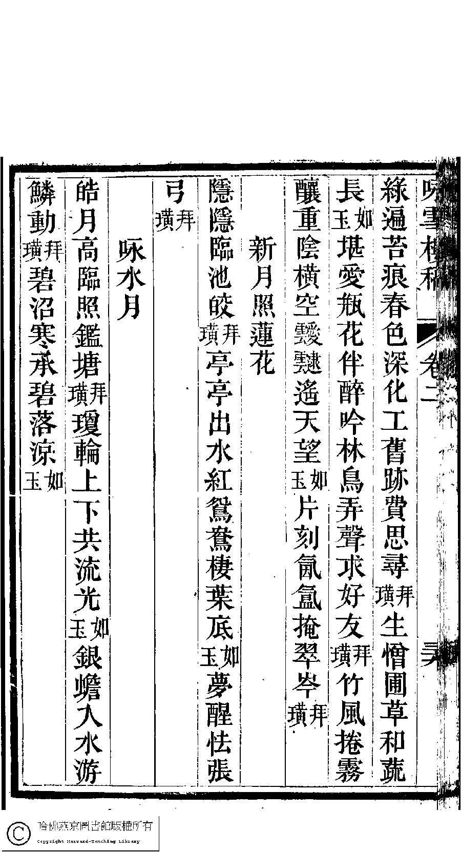 | Appears in: Yong xue lou gao: 5 juan, juan shou 1 juan, fu 1 juan ( by Gan lirou, Qing dynasty) |