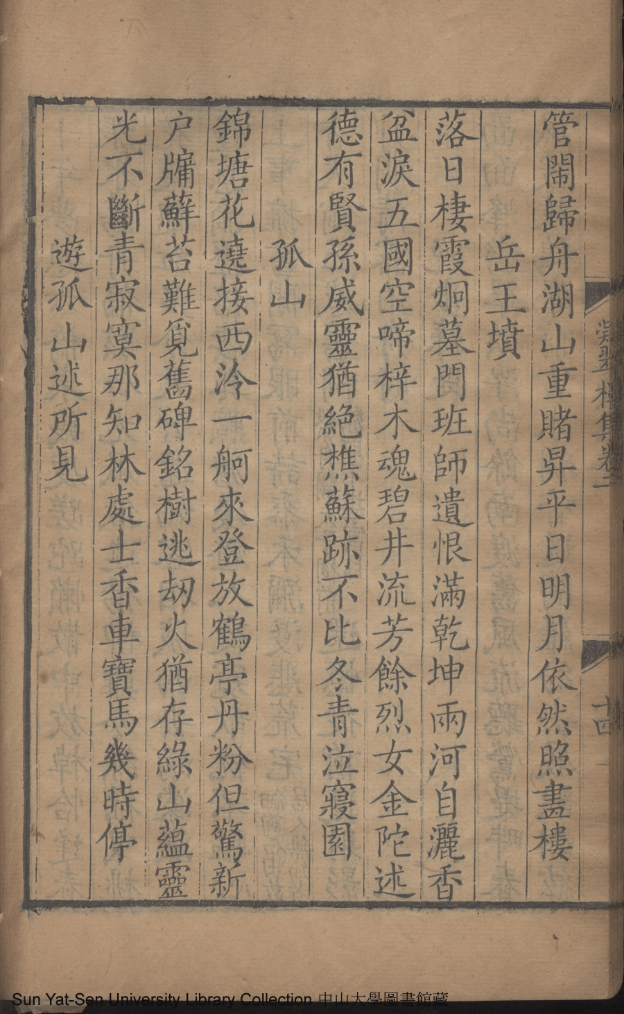 | (PRINT FRIENDLY VERSION) 凝翠樓集:四卷(清王慧撰)。康熙四十七年戊子(1708)朱氏銀槎閣精刊本 ![]() Page : 卷二14b | click for larger image | Back |