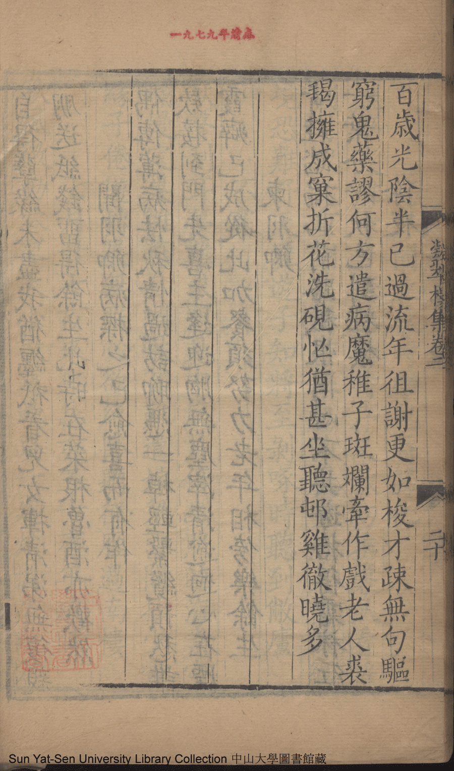 | (PRINT FRIENDLY VERSION) 凝翠樓集:四卷(清王慧撰)。康熙四十七年戊子(1708)朱氏銀槎閣精刊本 ![]() Page : 卷二20b | click for larger image | 凝翠樓集:四卷(清王慧撰)。康熙四十七年戊子(1708)朱氏銀槎閣精刊本![]() Page : 卷二20a | click for larger image | Back |