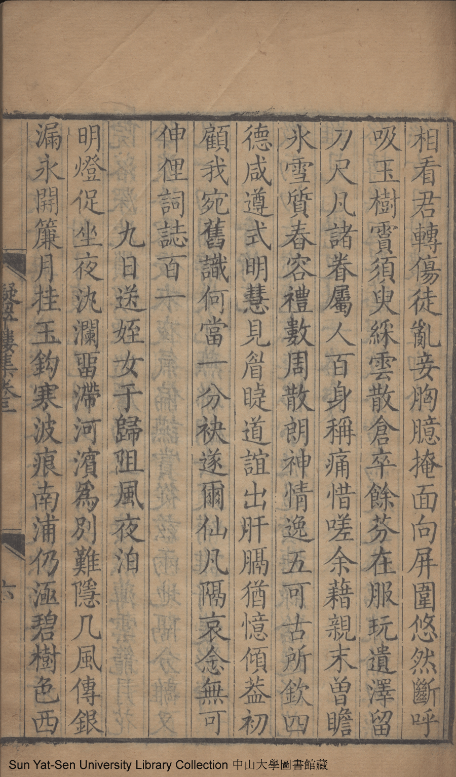 | (PRINT FRIENDLY VERSION) 凝翠樓集:四卷(清王慧撰)。康熙四十七年戊子(1708)朱氏銀槎閣精刊本 ![]() Page : 卷三6b | click for larger image | 凝翠樓集:四卷(清王慧撰)。康熙四十七年戊子(1708)朱氏銀槎閣精刊本![]() Page : 卷三6a | click for larger image | Back |