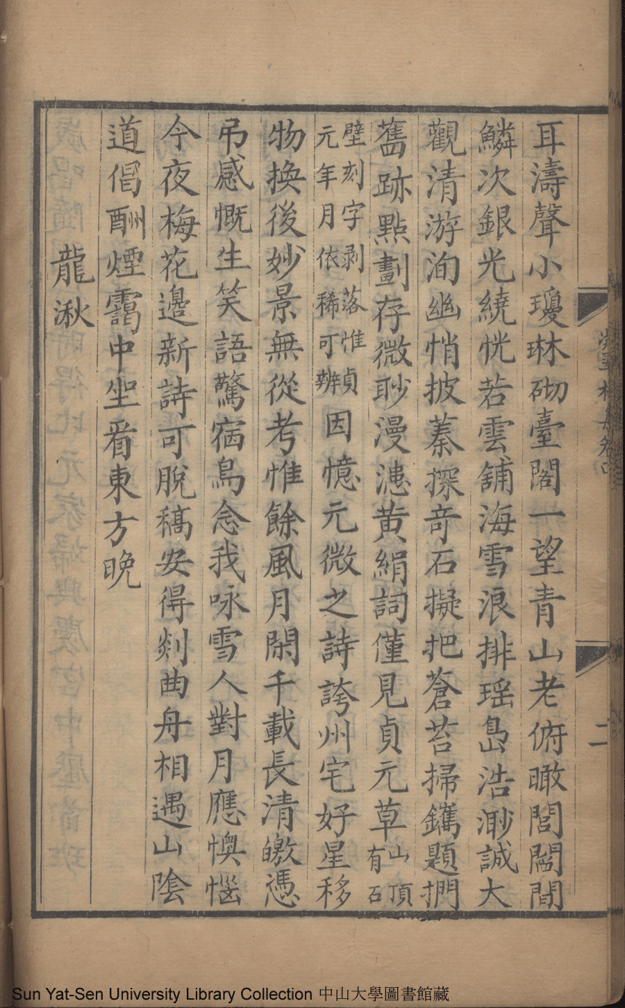 | (PRINT FRIENDLY VERSION) 凝翠樓集:四卷(清王慧撰)。康熙四十七年戊子(1708)朱氏銀槎閣精刊本 ![]() Page : 卷四2b | click for larger image | 凝翠樓集:四卷(清王慧撰)。康熙四十七年戊子(1708)朱氏銀槎閣精刊本![]() Page : 卷四2a | click for larger image | Back |