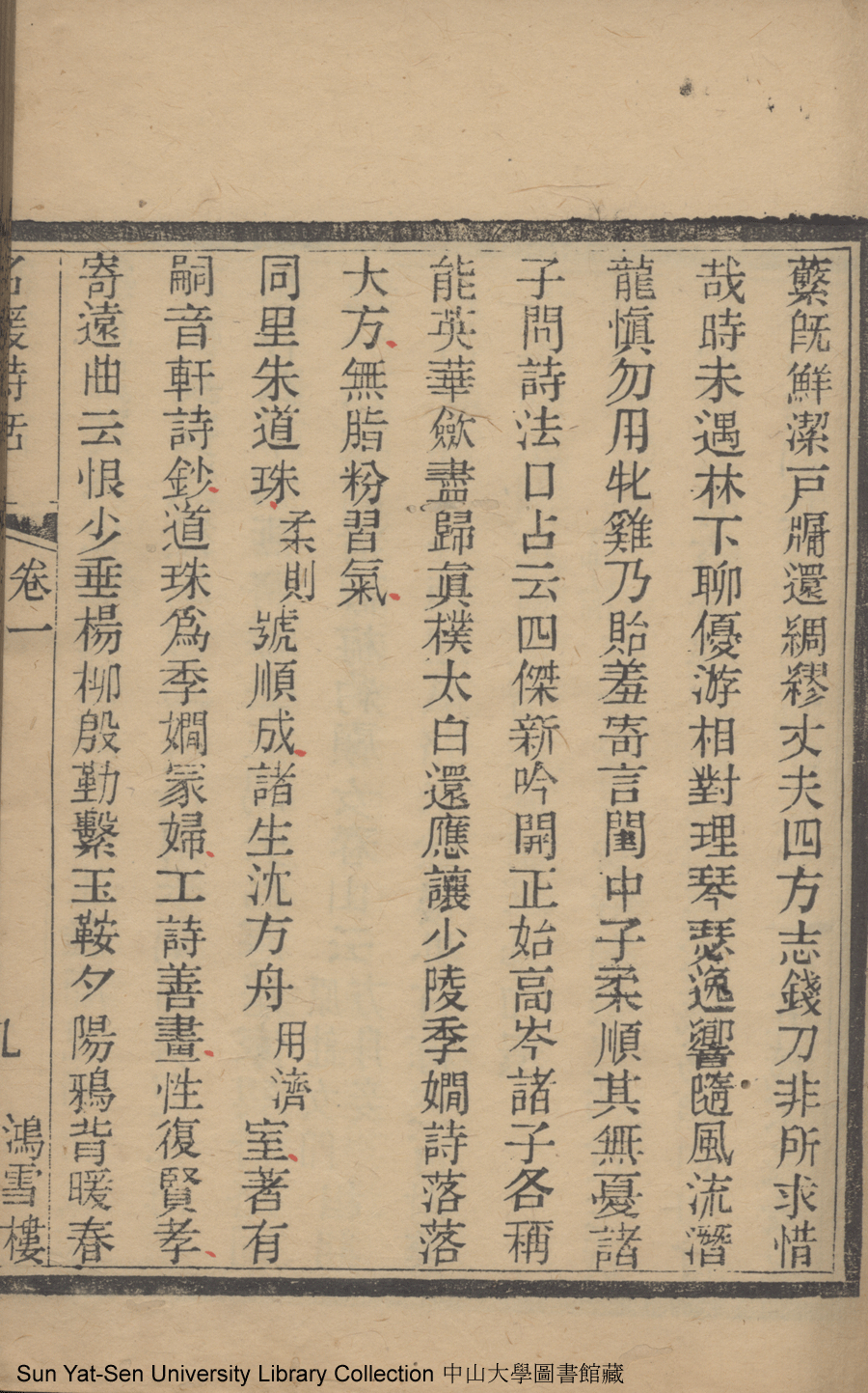| (PRINT FRIENDLY VERSION) 名媛詩話十二卷續集三卷: 十五卷(清沈善寶撰)。清光緒五年(1879)鴻雪樓刻巾箱本 ![]() Page : 卷一9a | click for larger image | 名媛詩話十二卷續集三卷: 十五卷(清沈善寶撰)。清光緒五年(1879)鴻雪樓刻巾箱本![]() Page : 卷一8b | click for larger image | Back |