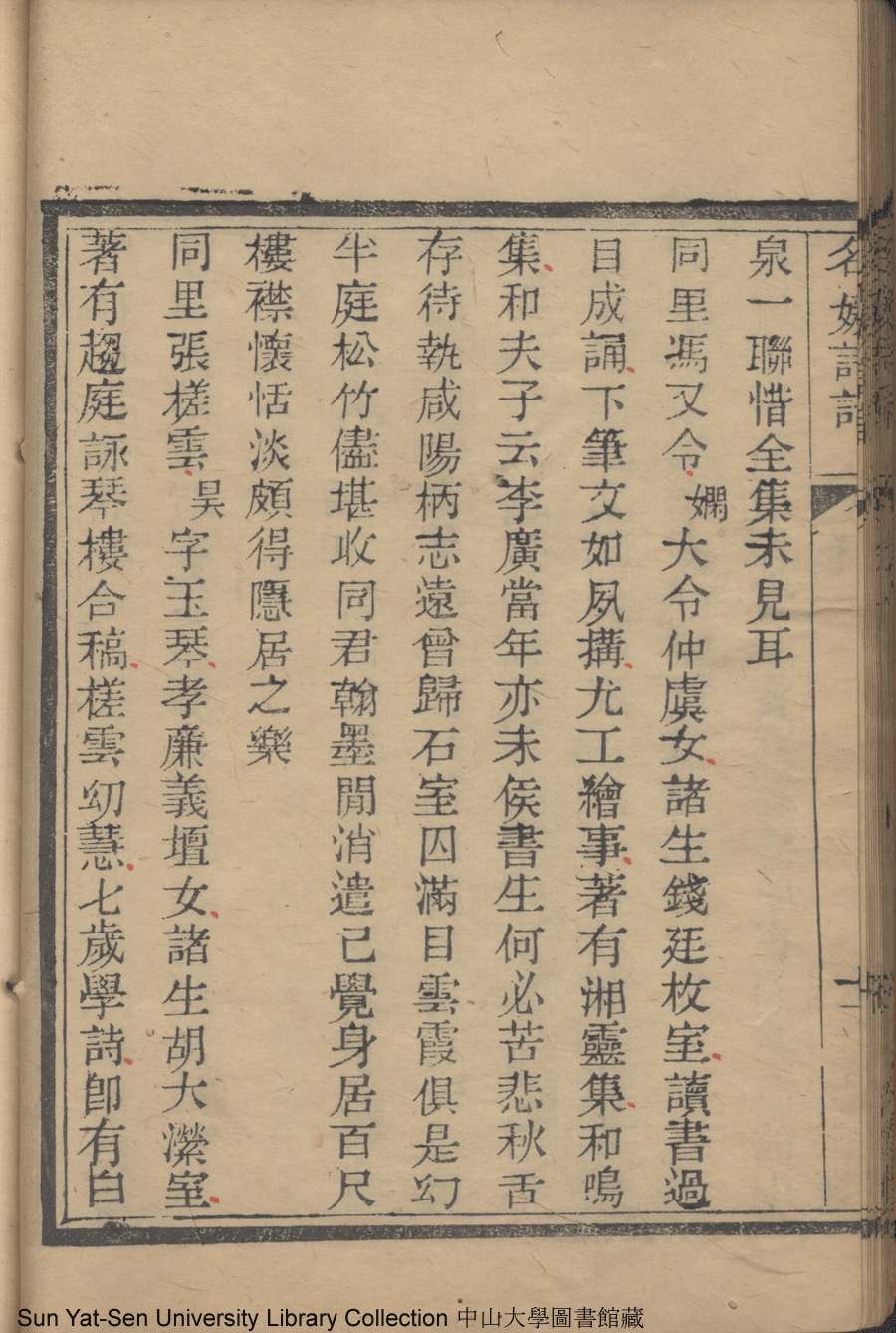 | (PRINT FRIENDLY VERSION) 名媛詩話十二卷續集三卷: 十五卷(清沈善寶撰)。清光緒五年(1879)鴻雪樓刻巾箱本 ![]() Page : 卷一11b | click for larger image | 名媛詩話十二卷續集三卷: 十五卷(清沈善寶撰)。清光緒五年(1879)鴻雪樓刻巾箱本![]() Page : 卷一11a | click for larger image | Back |