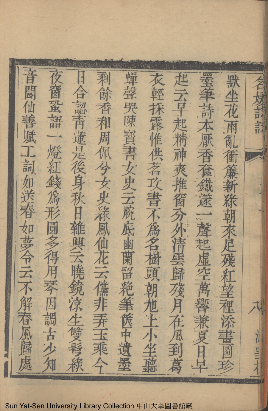 | (PRINT FRIENDLY VERSION) 名媛詩話十二卷續集三卷: 十五卷(清沈善寶撰)。清光緒五年(1879)鴻雪樓刻巾箱本 ![]() Page : 續集上9a | click for larger image | 名媛詩話十二卷續集三卷: 十五卷(清沈善寶撰)。清光緒五年(1879)鴻雪樓刻巾箱本![]() Page : 續集上8b | click for larger image | 名媛詩話十二卷續集三卷: 十五卷(清沈善寶撰)。清光緒五年(1879)鴻雪樓刻巾箱本![]() Page : 續集上8a | click for larger image | Back |