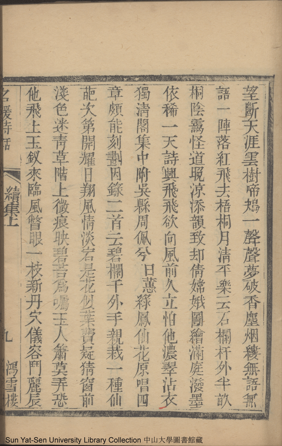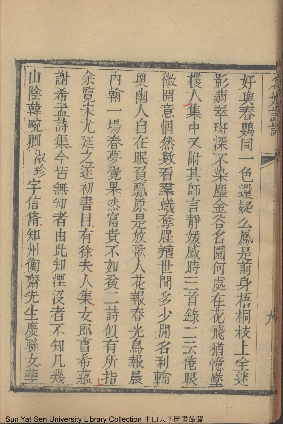 | (PRINT FRIENDLY VERSION) 名媛詩話十二卷續集三卷: 十五卷(清沈善寶撰)。清光緒五年(1879)鴻雪樓刻巾箱本 ![]() Page : 續集上9b | click for larger image | 名媛詩話十二卷續集三卷: 十五卷(清沈善寶撰)。清光緒五年(1879)鴻雪樓刻巾箱本![]() Page : 續集上9a | click for larger image | Back |
