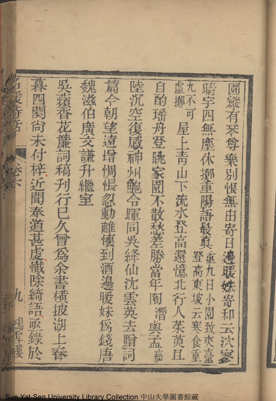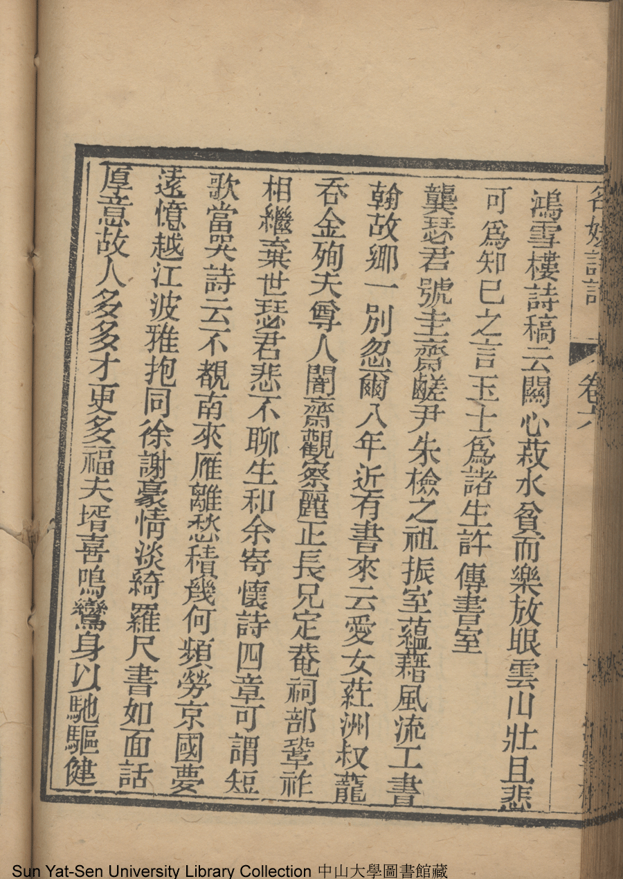 | (PRINT FRIENDLY VERSION) 名媛詩話十二卷續集三卷: 十五卷(清沈善寶撰)。清光緒五年(1879)鴻雪樓刻巾箱本 ![]() Page : 卷六10b | click for larger image | 名媛詩話十二卷續集三卷: 十五卷(清沈善寶撰)。清光緒五年(1879)鴻雪樓刻巾箱本![]() Page : 卷六10a | click for larger image | 名媛詩話十二卷續集三卷: 十五卷(清沈善寶撰)。清光緒五年(1879)鴻雪樓刻巾箱本![]() Page : 卷六9b | click for larger image | 名媛詩話十二卷續集三卷: 十五卷(清沈善寶撰)。清光緒五年(1879)鴻雪樓刻巾箱本![]() Page : 卷六9a | click for larger image | Back |