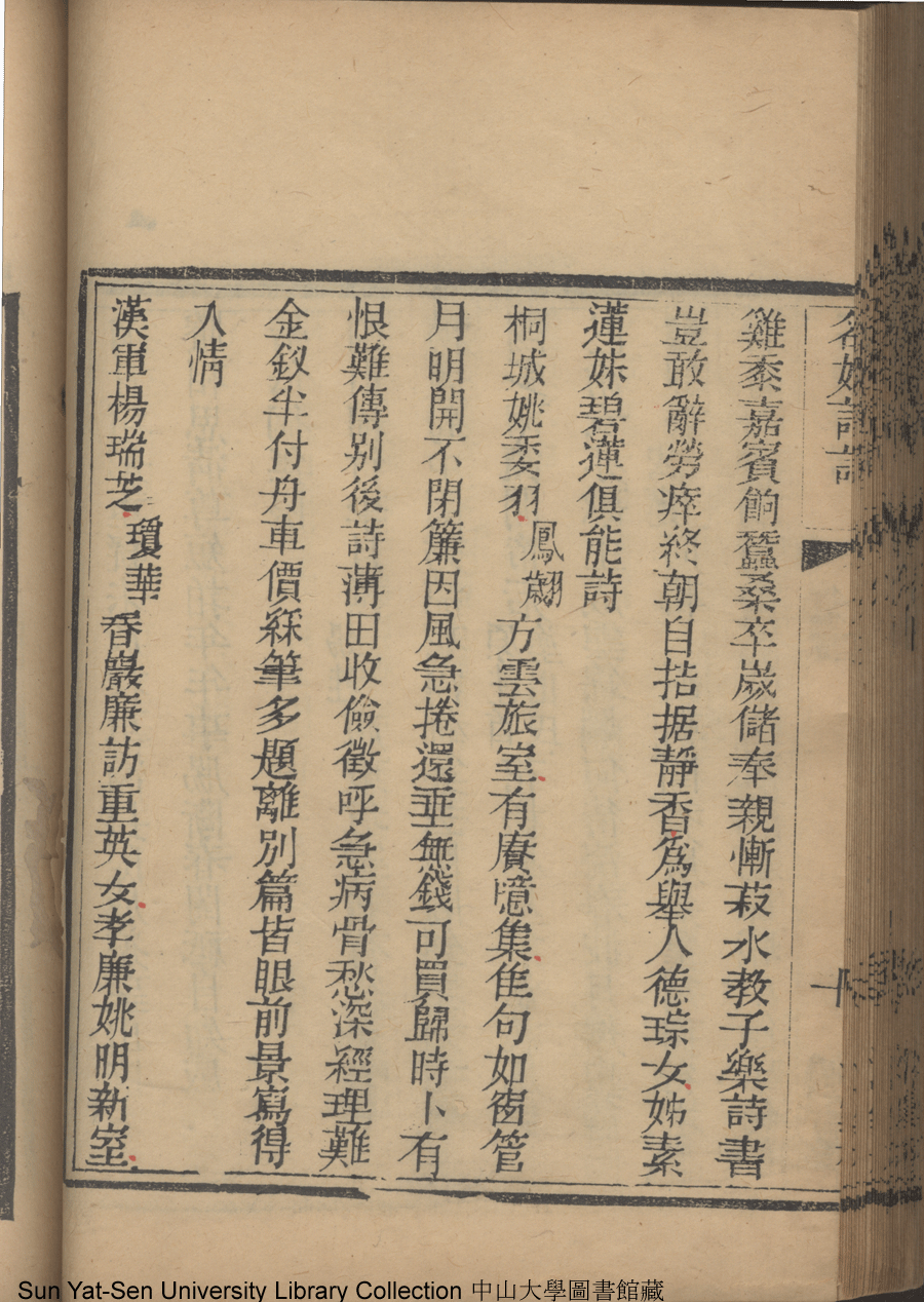 | (PRINT FRIENDLY VERSION) 名媛詩話十二卷續集三卷: 十五卷(清沈善寶撰)。清光緒五年(1879)鴻雪樓刻巾箱本 ![]() Page : 卷五10b | click for larger image | Back |