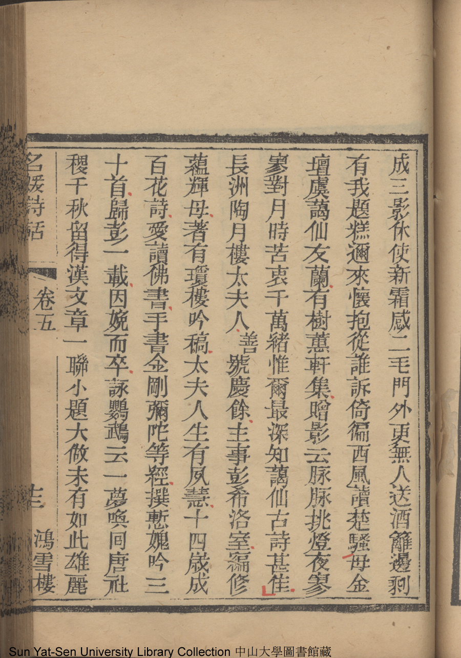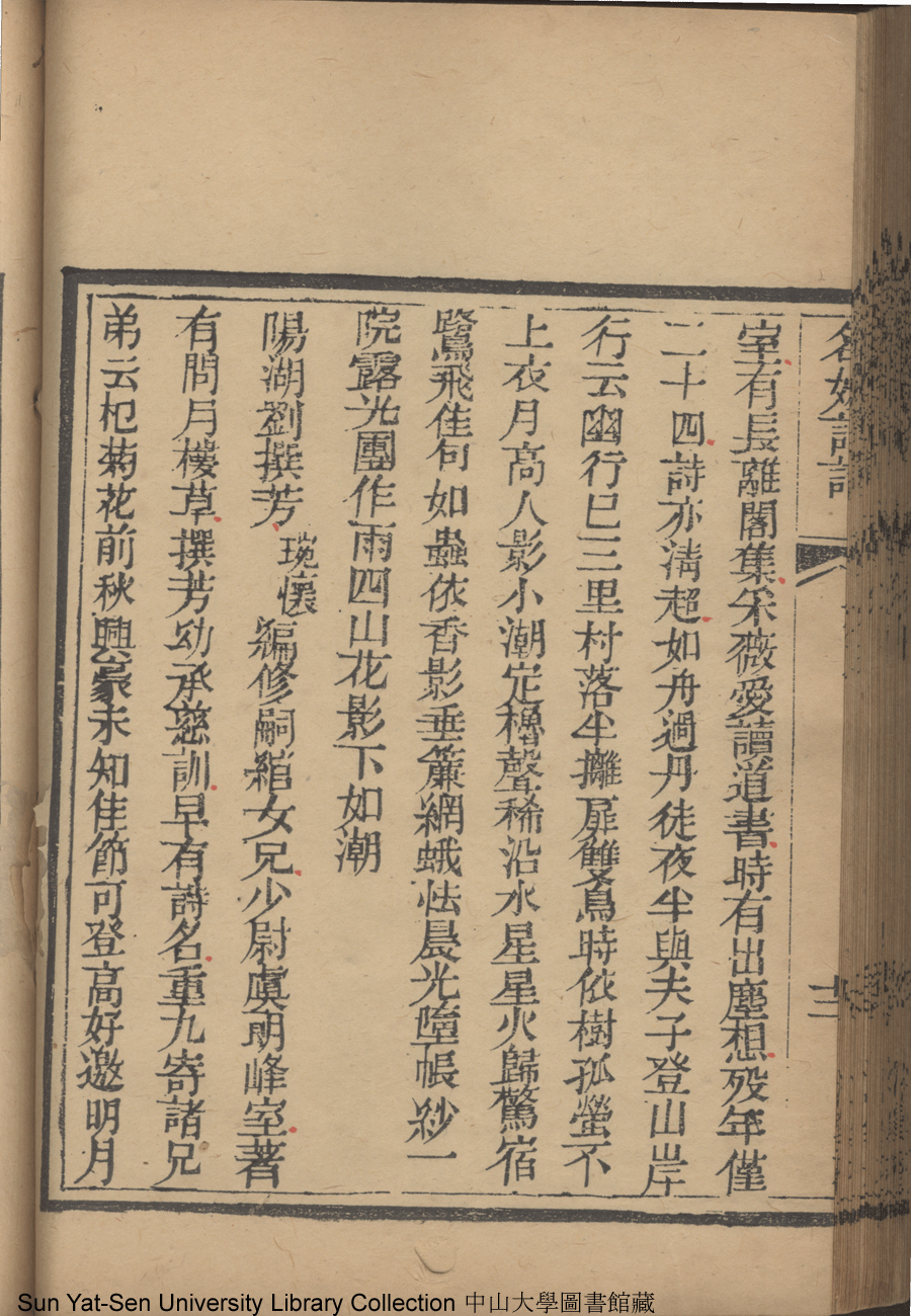 | (PRINT FRIENDLY VERSION) 名媛詩話十二卷續集三卷: 十五卷(清沈善寶撰)。清光緒五年(1879)鴻雪樓刻巾箱本 ![]() Page : 卷五13a | click for larger image | 名媛詩話十二卷續集三卷: 十五卷(清沈善寶撰)。清光緒五年(1879)鴻雪樓刻巾箱本![]() Page : 卷五12b | click for larger image | Back |