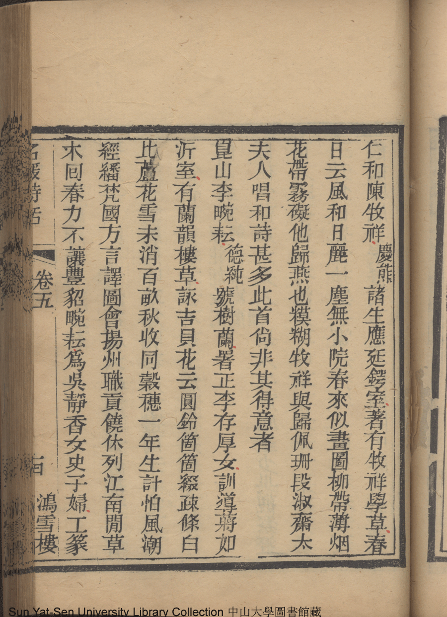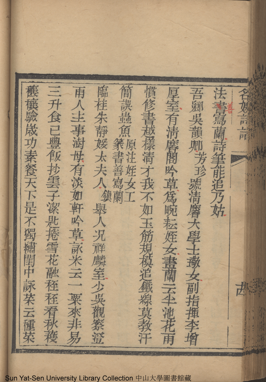 | (PRINT FRIENDLY VERSION) 名媛詩話十二卷續集三卷: 十五卷(清沈善寶撰)。清光緒五年(1879)鴻雪樓刻巾箱本 ![]() Page : 卷五14b | click for larger image | 名媛詩話十二卷續集三卷: 十五卷(清沈善寶撰)。清光緒五年(1879)鴻雪樓刻巾箱本![]() Page : 卷五14a | click for larger image | Back |