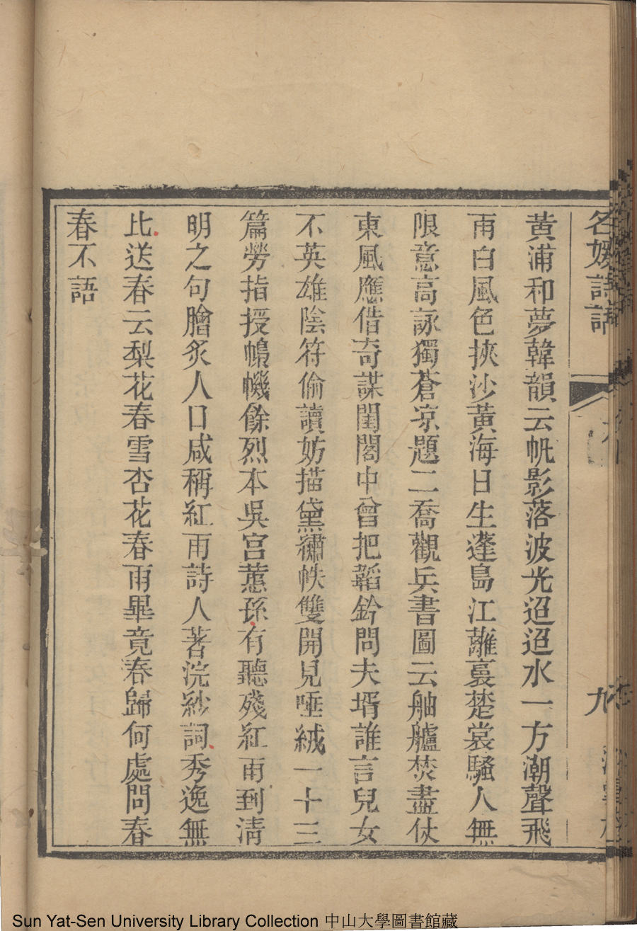 | (PRINT FRIENDLY VERSION) 名媛詩話十二卷續集三卷: 十五卷(清沈善寶撰)。清光緒五年(1879)鴻雪樓刻巾箱本 ![]() Page : 卷四9b | click for larger image | 名媛詩話十二卷續集三卷: 十五卷(清沈善寶撰)。清光緒五年(1879)鴻雪樓刻巾箱本![]() Page : 卷四9a | click for larger image | Back |