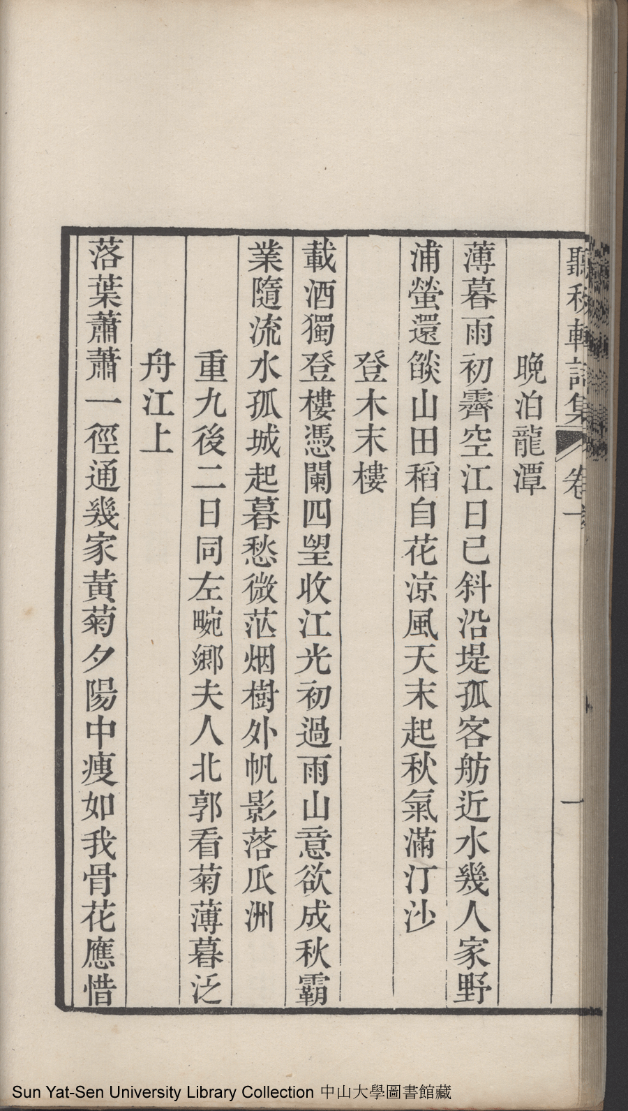 | (PRINT FRIENDLY VERSION) 聽秋軒詩集:六卷(清駱綺蘭撰)。清嘉慶金陵龔氏刻本 ![]() Page : 卷一1b | click for larger image | Back |