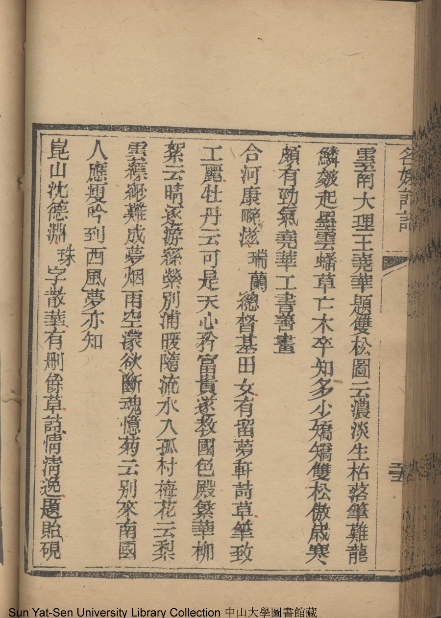 | (PRINT FRIENDLY VERSION) 名媛詩話十二卷續集三卷: 十五卷(清沈善寶撰)。清光緒五年(1879)鴻雪樓刻巾箱本 ![]() Page : 卷五26a | click for larger image | 名媛詩話十二卷續集三卷: 十五卷(清沈善寶撰)。清光緒五年(1879)鴻雪樓刻巾箱本![]() Page : 卷五25b | click for larger image | Back |