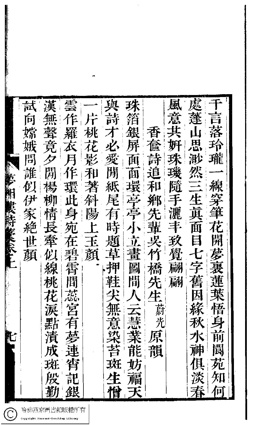 | (PRINT FRIENDLY VERSION) 夢湘樓詩稿﹕二卷﹐詞稿﹕一卷﹔繭香館吟艸﹕一卷﹐繡餘詞草﹕一卷(清宗婉等撰) : 夢湘樓詩稿﹕二卷﹐詞稿﹕一卷。清光緒六年(1880)常熟宗氏刻本 ![]() Page : 上.7a | click for larger image | 夢湘樓詩稿﹕二卷﹐詞稿﹕一卷﹔繭香館吟艸﹕一卷﹐繡餘詞草﹕一卷(清宗婉等撰)。清光緒六年(1880)常熟宗氏刻本![]() Page : 上.7a | click for larger image | 夢湘樓詩稿﹕二卷﹐詞稿﹕一卷﹔繭香館吟艸﹕一卷﹐繡餘詞草﹕一卷(清宗婉等撰) : 夢湘樓詩稿﹕二卷﹐詞稿﹕一卷。清光緒六年(1880)常熟宗氏刻本![]() Page : 上.6b | click for larger image | 夢湘樓詩稿﹕二卷﹐詞稿﹕一卷﹔繭香館吟艸﹕一卷﹐繡餘詞草﹕一卷(清宗婉等撰)。清光緒六年(1880)常熟宗氏刻本![]() Page : 上.6b | click for larger image | Back |