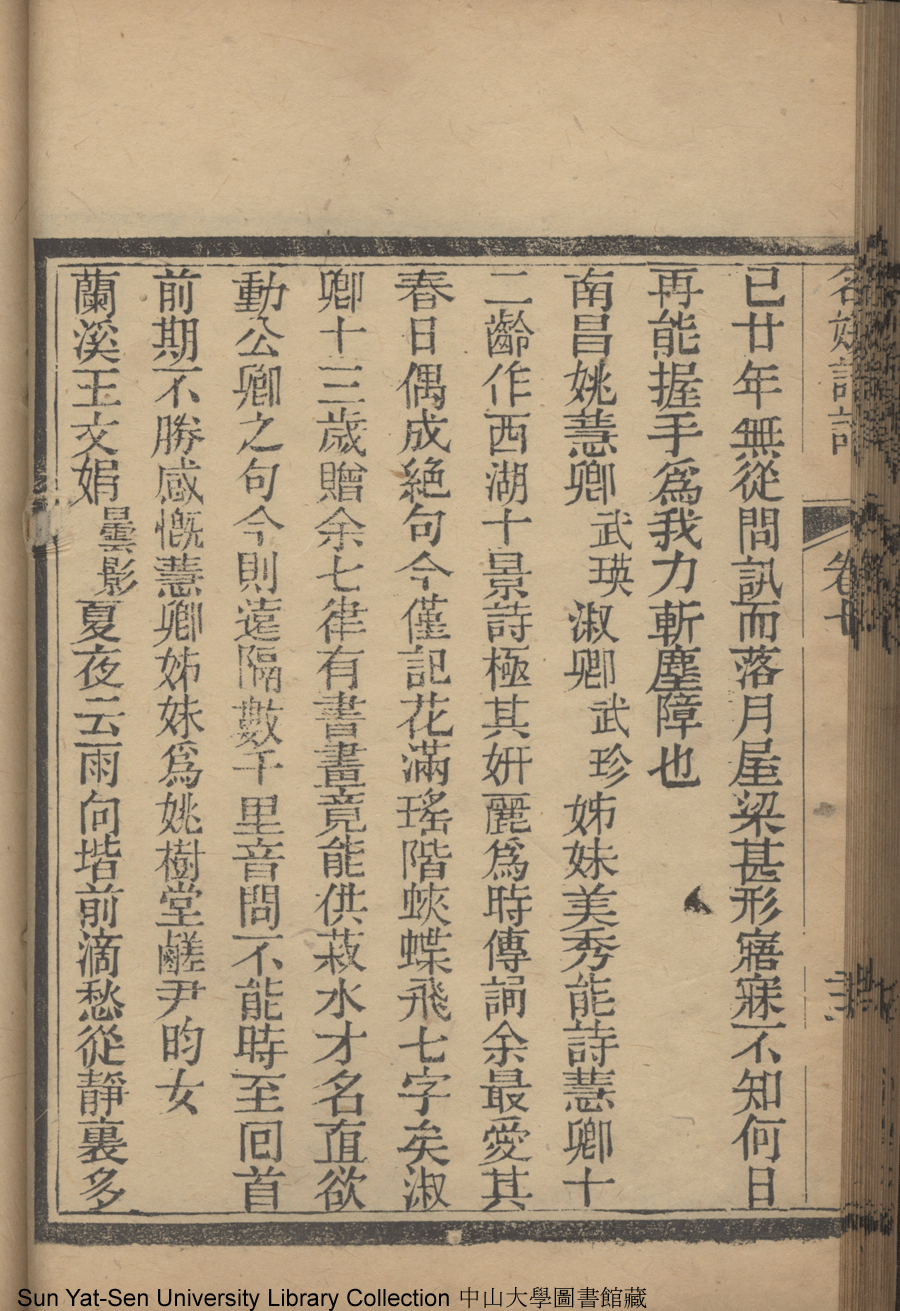 | (PRINT FRIENDLY VERSION) 名媛詩話十二卷續集三卷: 十五卷(清沈善寶撰)。清光緒五年(1879)鴻雪樓刻巾箱本 ![]() Page : 卷七22b | click for larger image | Back |