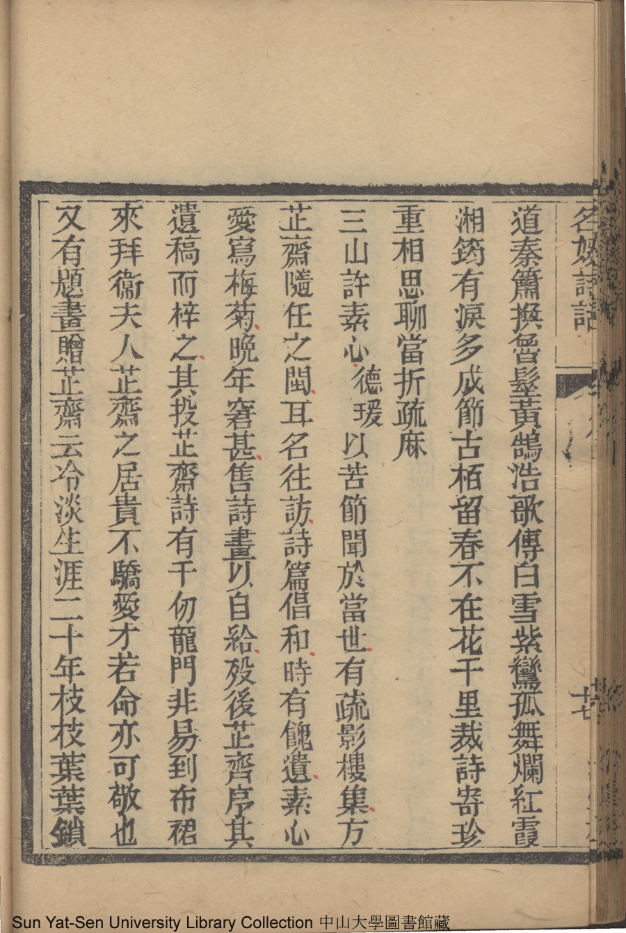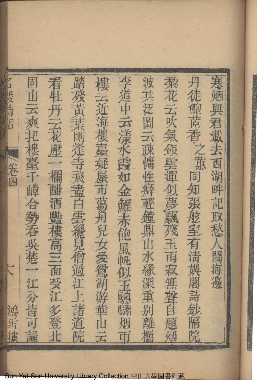 | (PRINT FRIENDLY VERSION) 名媛詩話十二卷續集三卷: 十五卷(清沈善寶撰)。清光緒五年(1879)鴻雪樓刻巾箱本 ![]() Page : 卷四18a | click for larger image | 名媛詩話十二卷續集三卷: 十五卷(清沈善寶撰)。清光緒五年(1879)鴻雪樓刻巾箱本![]() Page : 卷四17b | click for larger image | Back |