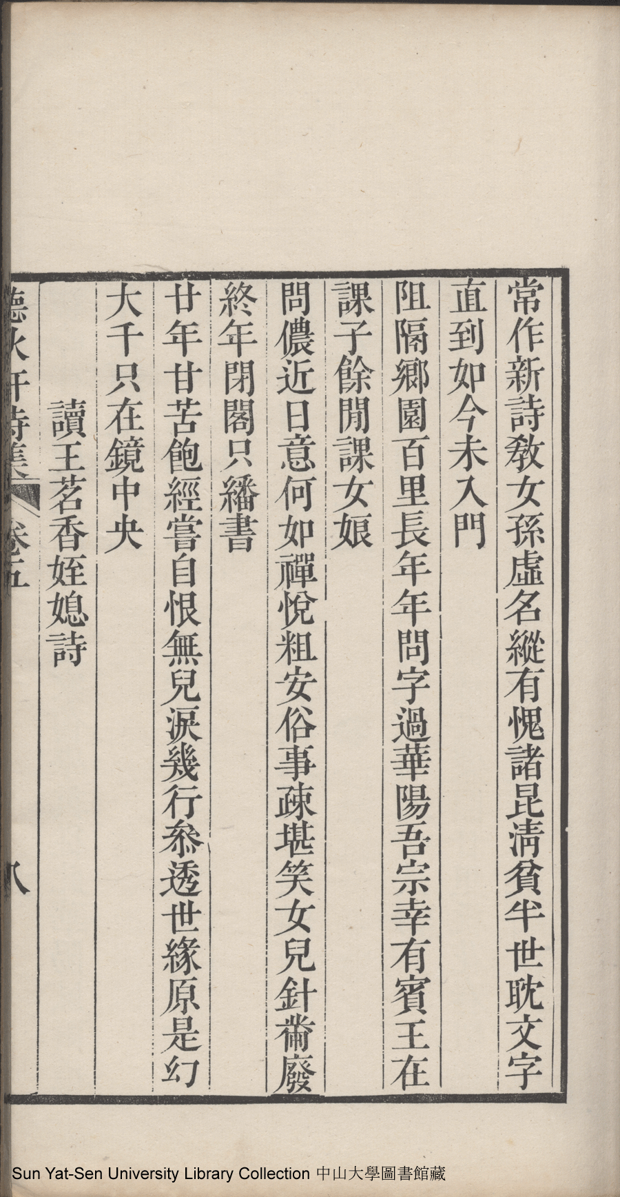 | (PRINT FRIENDLY VERSION) 聽秋軒詩集:六卷(清駱綺蘭撰)。清嘉慶金陵龔氏刻本 ![]() Page : 卷五8a | click for larger image | 聽秋軒詩集:六卷(清駱綺蘭撰)。清嘉慶金陵龔氏刻本![]() Page : 卷五7b | click for larger image | Back |