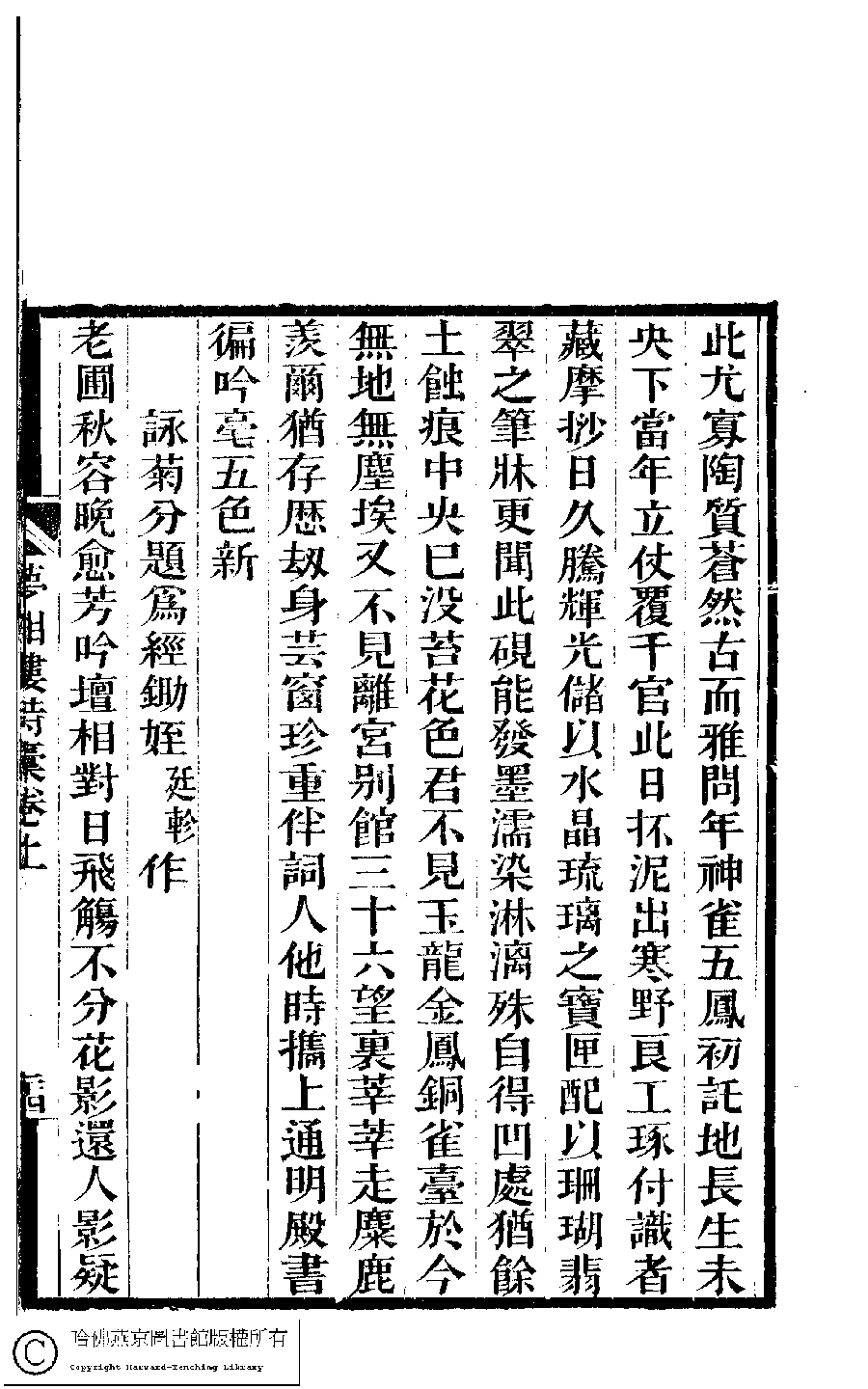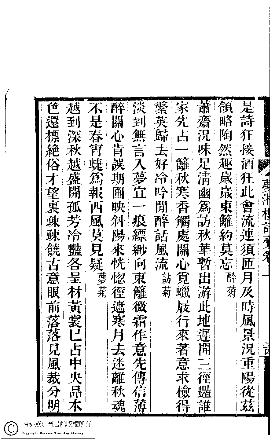 | (PRINT FRIENDLY VERSION) 夢湘樓詩稿﹕二卷﹐詞稿﹕一卷﹔繭香館吟艸﹕一卷﹐繡餘詞草﹕一卷(清宗婉等撰) : 夢湘樓詩稿﹕二卷﹐詞稿﹕一卷。清光緒六年(1880)常熟宗氏刻本 ![]() Page : 上.25b | click for larger image | 夢湘樓詩稿﹕二卷﹐詞稿﹕一卷﹔繭香館吟艸﹕一卷﹐繡餘詞草﹕一卷(清宗婉等撰) : 夢湘樓詩稿﹕二卷﹐詞稿﹕一卷。清光緒六年(1880)常熟宗氏刻本![]() Page : 上.25a | click for larger image | 夢湘樓詩稿﹕二卷﹐詞稿﹕一卷﹔繭香館吟艸﹕一卷﹐繡餘詞草﹕一卷(清宗婉等撰) : 夢湘樓詩稿﹕二卷﹐詞稿﹕一卷。清光緒六年(1880)常熟宗氏刻本![]() Page : 上.24b | click for larger image | 夢湘樓詩稿﹕二卷﹐詞稿﹕一卷﹔繭香館吟艸﹕一卷﹐繡餘詞草﹕一卷(清宗婉等撰) : 夢湘樓詩稿﹕二卷﹐詞稿﹕一卷。清光緒六年(1880)常熟宗氏刻本![]() Page : 上.24a | click for larger image | Back |