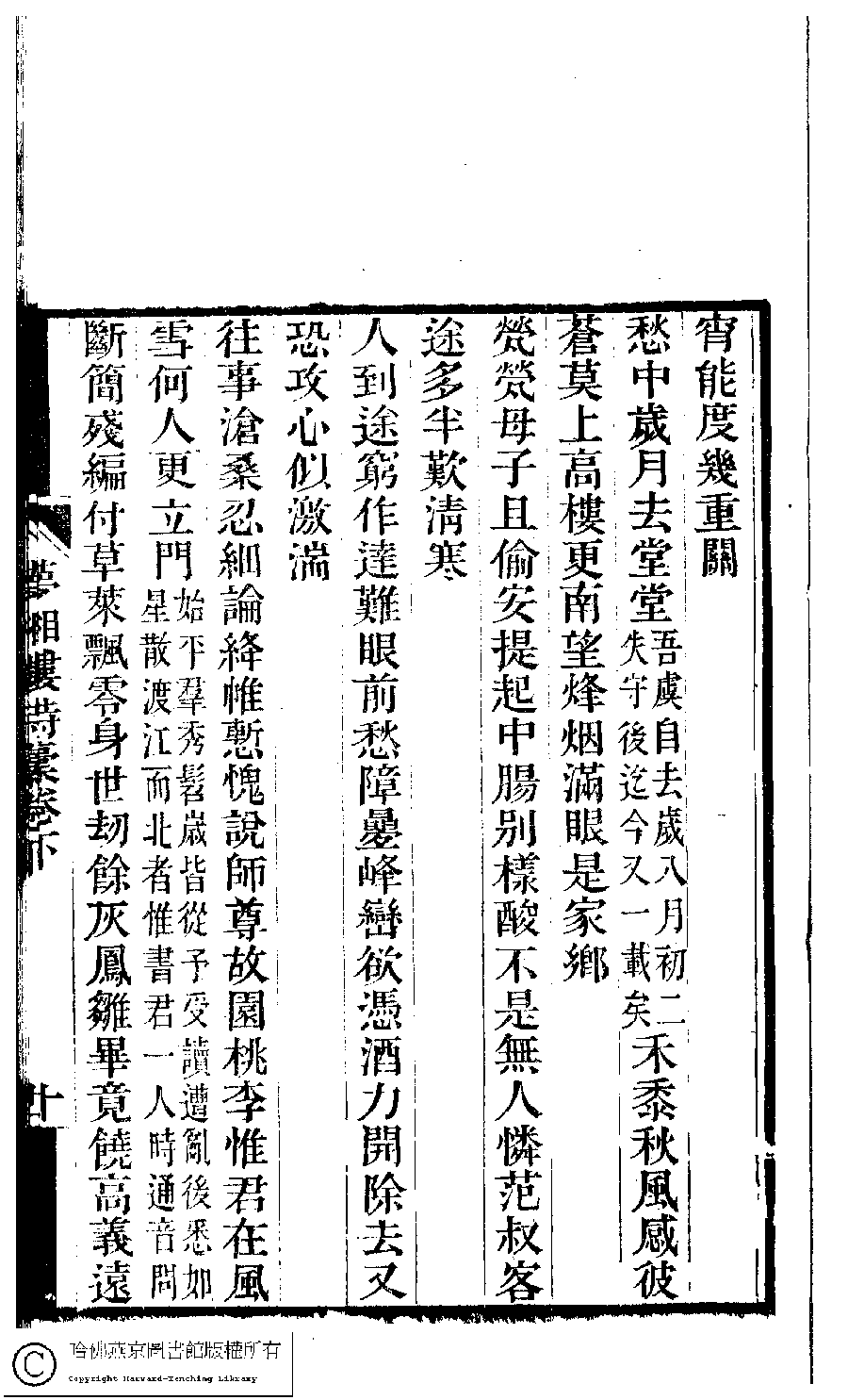 | (PRINT FRIENDLY VERSION) 夢湘樓詩稿﹕二卷﹐詞稿﹕一卷﹔繭香館吟艸﹕一卷﹐繡餘詞草﹕一卷(清宗婉等撰) : 夢湘樓詩稿﹕二卷﹐詞稿﹕一卷。清光緒六年(1880)常熟宗氏刻本 ![]() Page : 下.10b | click for larger image | 夢湘樓詩稿﹕二卷﹐詞稿﹕一卷﹔繭香館吟艸﹕一卷﹐繡餘詞草﹕一卷(清宗婉等撰) : 夢湘樓詩稿﹕二卷﹐詞稿﹕一卷。清光緒六年(1880)常熟宗氏刻本![]() Page : 下.10a | click for larger image | 夢湘樓詩稿﹕二卷﹐詞稿﹕一卷﹔繭香館吟艸﹕一卷﹐繡餘詞草﹕一卷(清宗婉等撰) : 夢湘樓詩稿﹕二卷﹐詞稿﹕一卷。清光緒六年(1880)常熟宗氏刻本![]() Page : 下.9b | click for larger image | Back |