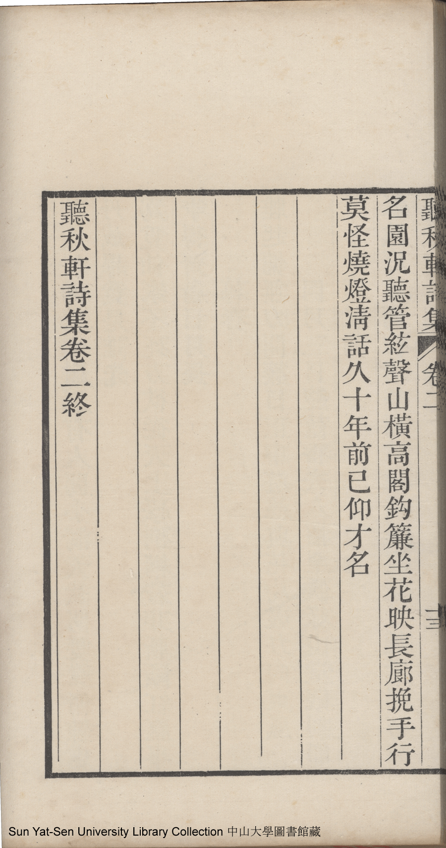 | (PRINT FRIENDLY VERSION) 聽秋軒詩集:六卷(清駱綺蘭撰)。清嘉慶金陵龔氏刻本 ![]() Page : 卷二13b | click for larger image | 聽秋軒詩集:六卷(清駱綺蘭撰)。清嘉慶金陵龔氏刻本![]() Page : 卷二13a | click for larger image | Back |