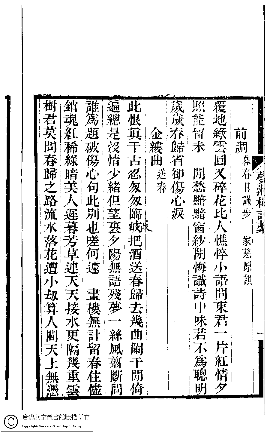 Poem [Qian diao[Zui hua yin] : Mu chun ri jin bu jia ci yuan yun]