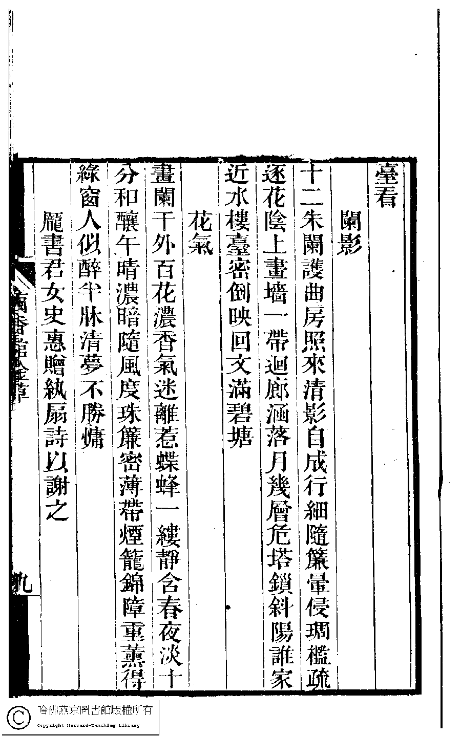| (PRINT FRIENDLY VERSION) 夢湘樓詩稿﹕二卷﹐詞稿﹕一卷﹔繭香館吟艸﹕一卷﹐繡餘詞草﹕一卷(清宗婉等撰) : 繭香館吟艸﹕一卷。清光緒六年(1880)常熟宗氏刻本 ![]() Page : 9a | click for larger image | Back |
