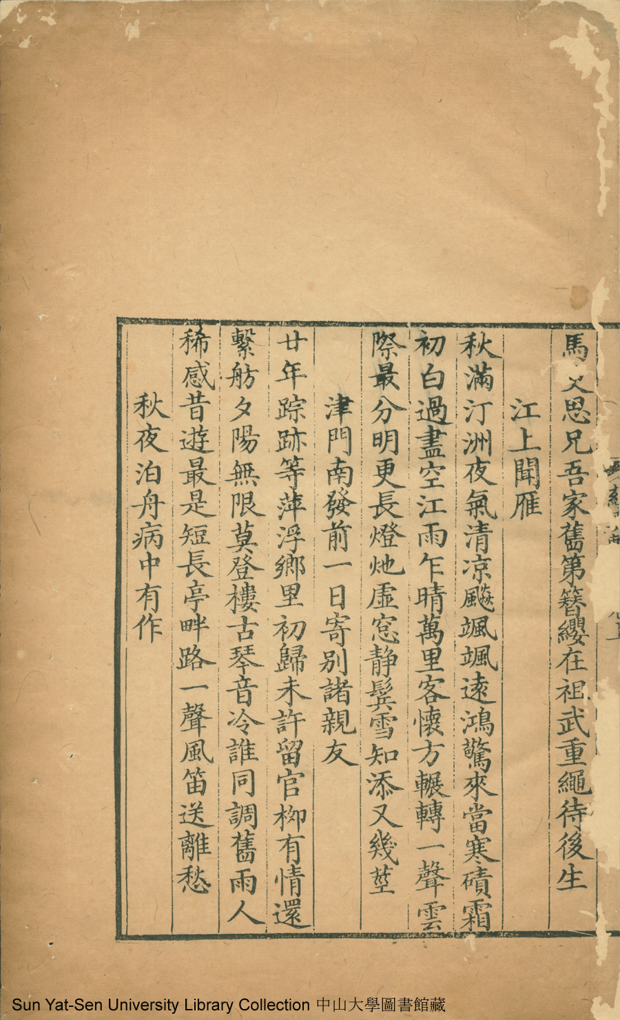 Poem [Qiu ye bo zhou bing zhong you zuo]