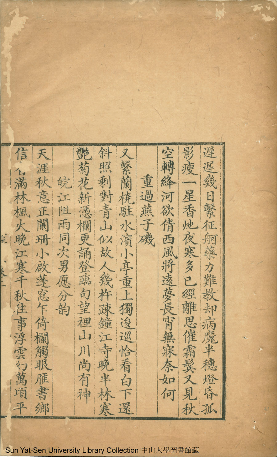 | (PRINT FRIENDLY VERSION) 蘊真軒詩鈔:二卷(清蔡琬撰)。乾隆四十四年己亥(1799)寫刻本 ![]() Page : 卷上16a | click for larger image | 蘊真軒詩鈔:二卷(清蔡琬撰)。乾隆四十四年己亥(1799)寫刻本![]() Page : 卷上15b | click for larger image | Back |