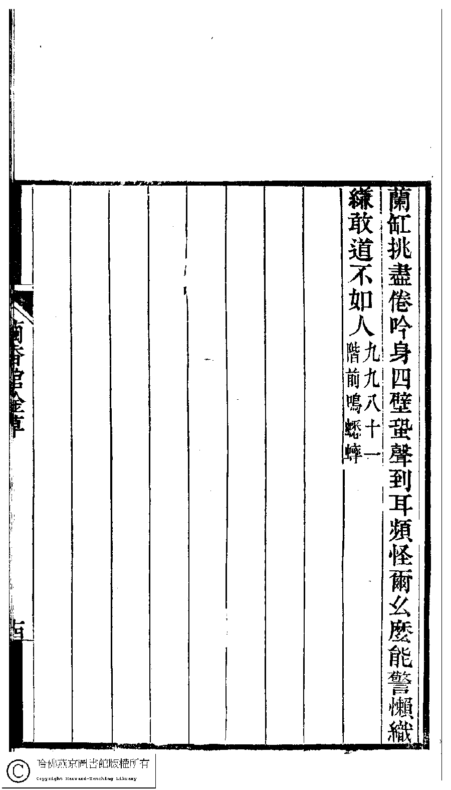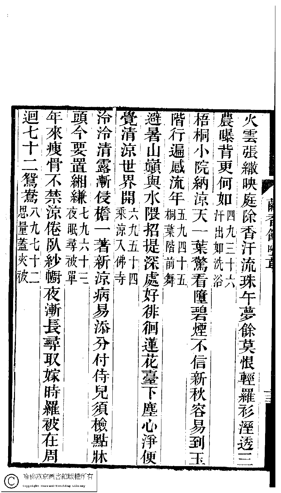 | (PRINT FRIENDLY VERSION) 夢湘樓詩稿﹕二卷﹐詞稿﹕一卷﹔繭香館吟艸﹕一卷﹐繡餘詞草﹕一卷(清宗婉等撰) : 繭香館吟艸﹕一卷。清光緒六年(1880)常熟宗氏刻本 ![]() Page : 14b | click for larger image | 夢湘樓詩稿﹕二卷﹐詞稿﹕一卷﹔繭香館吟艸﹕一卷﹐繡餘詞草﹕一卷(清宗婉等撰) : 繭香館吟艸﹕一卷。清光緒六年(1880)常熟宗氏刻本![]() Page : 14a | click for larger image | 夢湘樓詩稿﹕二卷﹐詞稿﹕一卷﹔繭香館吟艸﹕一卷﹐繡餘詞草﹕一卷(清宗婉等撰) : 繭香館吟艸﹕一卷。清光緒六年(1880)常熟宗氏刻本![]() Page : 13b | click for larger image | 夢湘樓詩稿﹕二卷﹐詞稿﹕一卷﹔繭香館吟艸﹕一卷﹐繡餘詞草﹕一卷(清宗婉等撰) : 繭香館吟艸﹕一卷。清光緒六年(1880)常熟宗氏刻本![]() Page : 13a | click for larger image | Back |