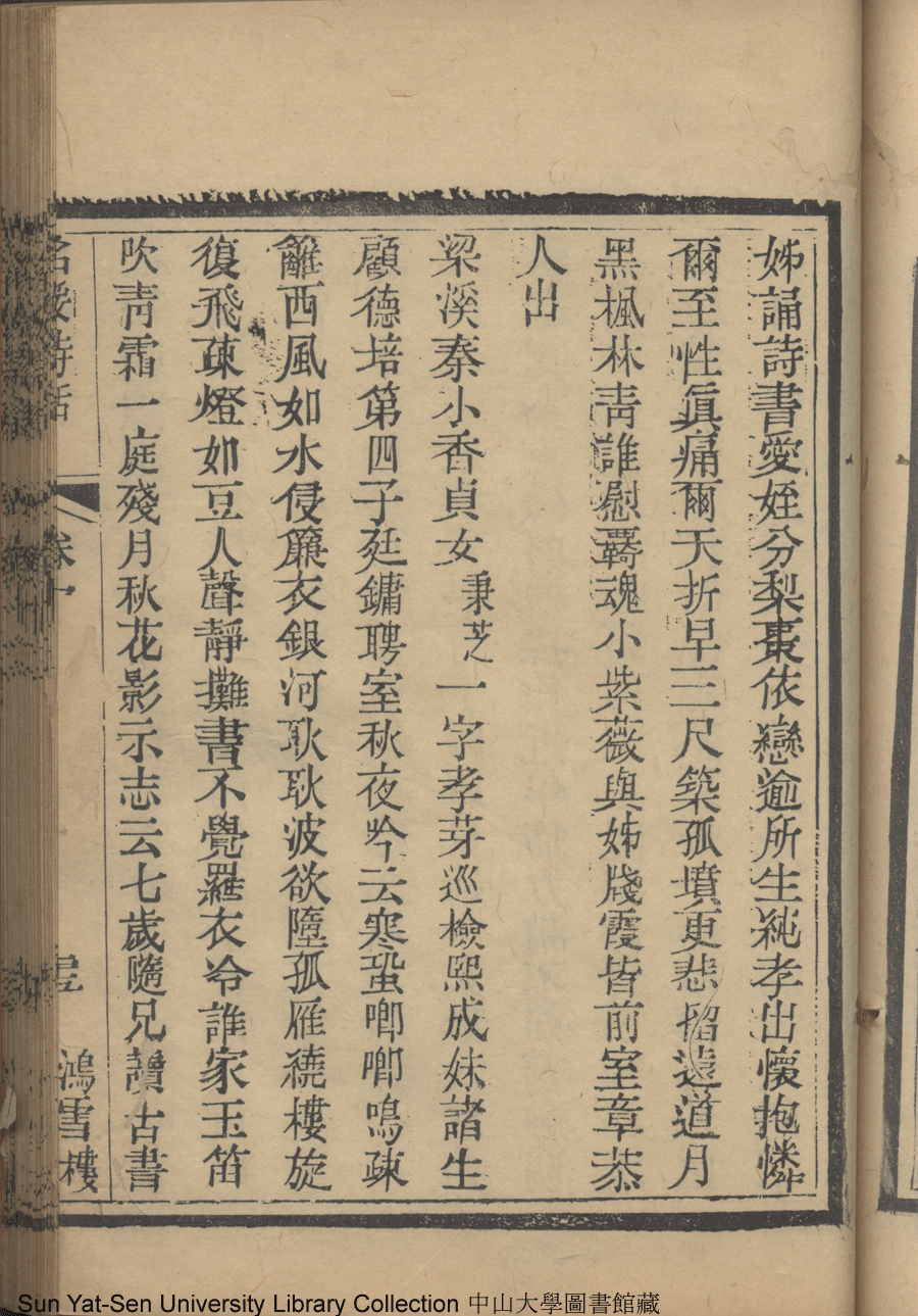 | (PRINT FRIENDLY VERSION) 名媛詩話十二卷續集三卷: 十五卷(清沈善寶撰)。清光緒五年(1879)鴻雪樓刻巾箱本 ![]() Page : 卷十一25b | click for larger image | 名媛詩話十二卷續集三卷: 十五卷(清沈善寶撰)。清光緒五年(1879)鴻雪樓刻巾箱本![]() Page : 卷十一25a | click for larger image | Back |
