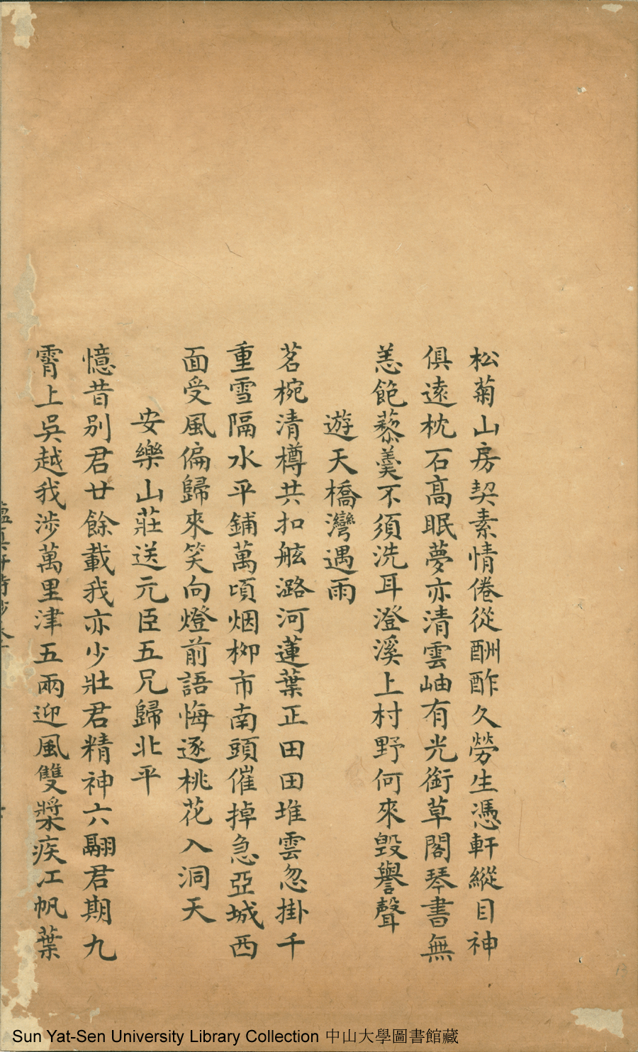 | (PRINT FRIENDLY VERSION) 蘊真軒詩鈔:二卷(清蔡琬撰)。乾隆四十四年己亥(1799)寫刻本 ![]() Page : 卷下7b | click for larger image | 蘊真軒詩鈔:二卷(清蔡琬撰)。乾隆四十四年己亥(1799)寫刻本![]() Page : 卷下7a | click for larger image | Back |