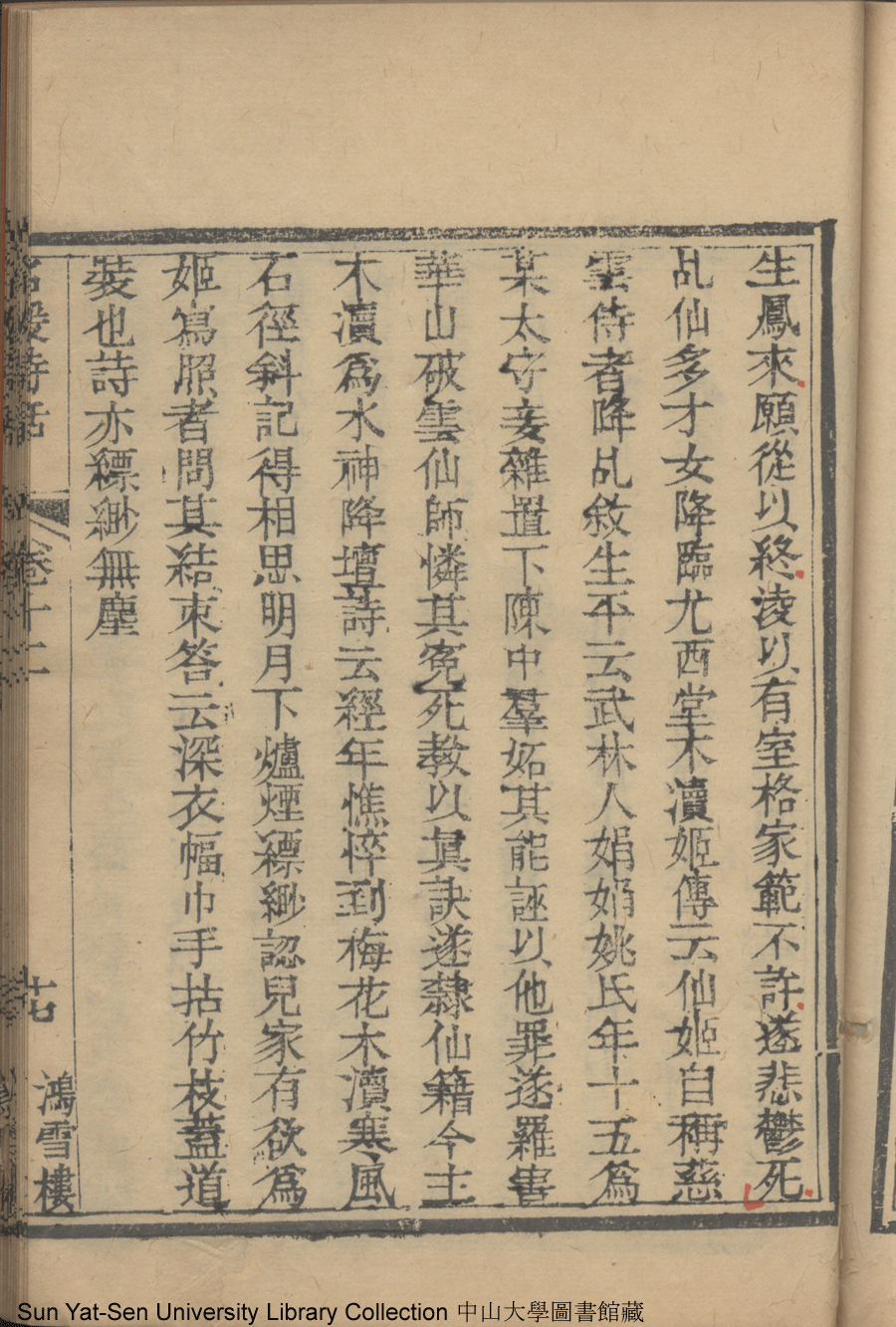 | (PRINT FRIENDLY VERSION) 名媛詩話十二卷續集三卷: 十五卷(清沈善寶撰)。清光緒五年(1879)鴻雪樓刻巾箱本 ![]() Page : 卷十二17a | click for larger image | Back |