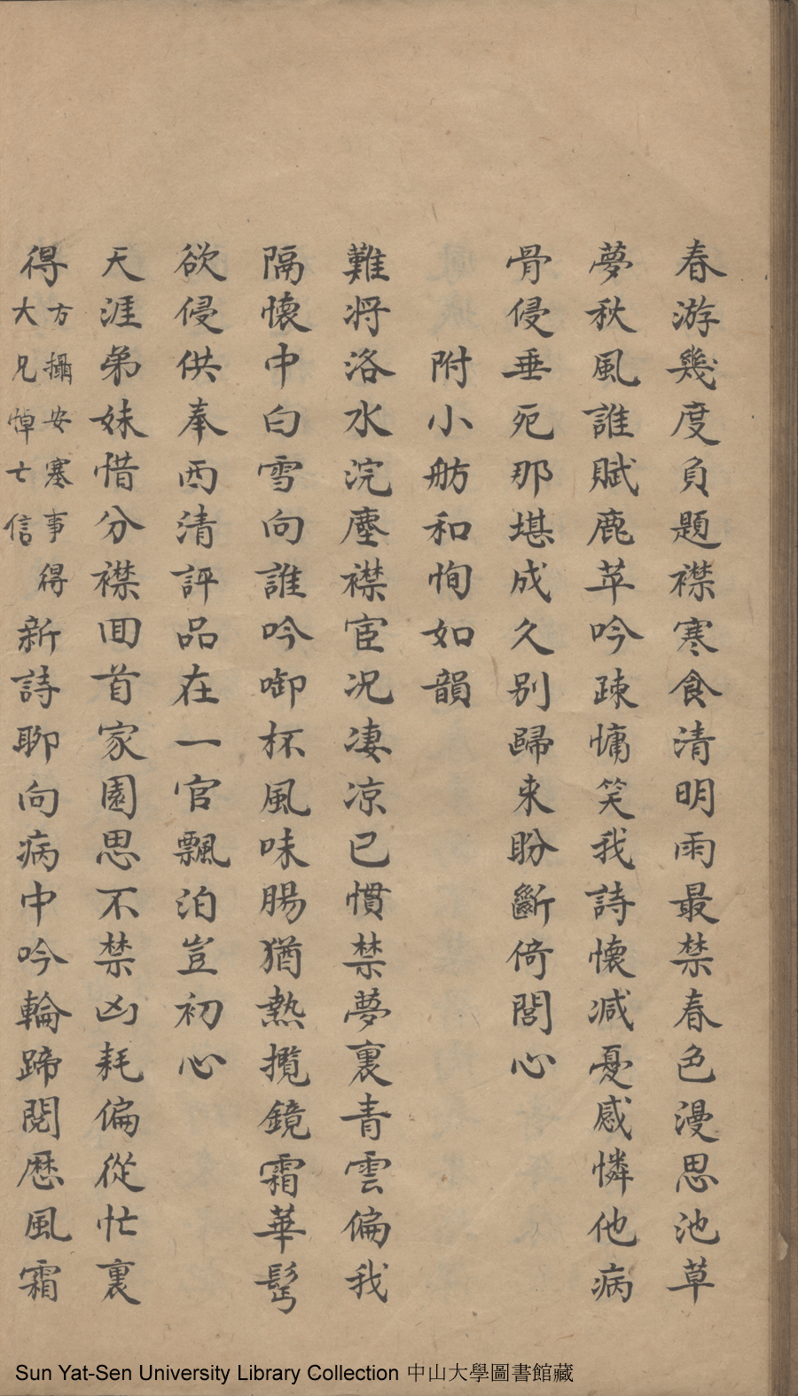 | (PRINT FRIENDLY VERSION) 不櫛吟續刻: 不分卷,不櫛吟未刻稿: 不分卷(清潘素心撰)。晚清(1843-1911)抄本 ![]() Page : 續刻17b | click for larger image | 不櫛吟續刻: 不分卷,不櫛吟未刻稿: 不分卷(清潘素心撰)。晚清(1843-1911)抄本![]() Page : 續刻17a | click for larger image | Back |