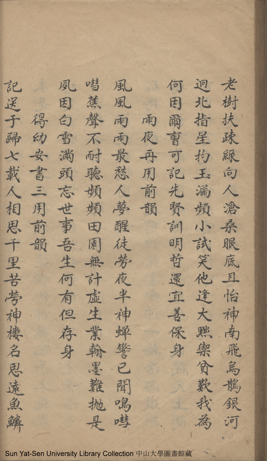 | (PRINT FRIENDLY VERSION) 不櫛吟續刻: 不分卷,不櫛吟未刻稿: 不分卷(清潘素心撰)。晚清(1843-1911)抄本 ![]() Page : 未刻稿9b | click for larger image | 不櫛吟續刻: 不分卷,不櫛吟未刻稿: 不分卷(清潘素心撰)。晚清(1843-1911)抄本![]() Page : 未刻稿9a | click for larger image | Back |
