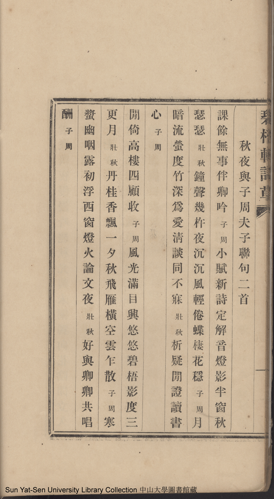 Poem [Qiu ye yu zi Zhou fu zi lian ju er shou]
