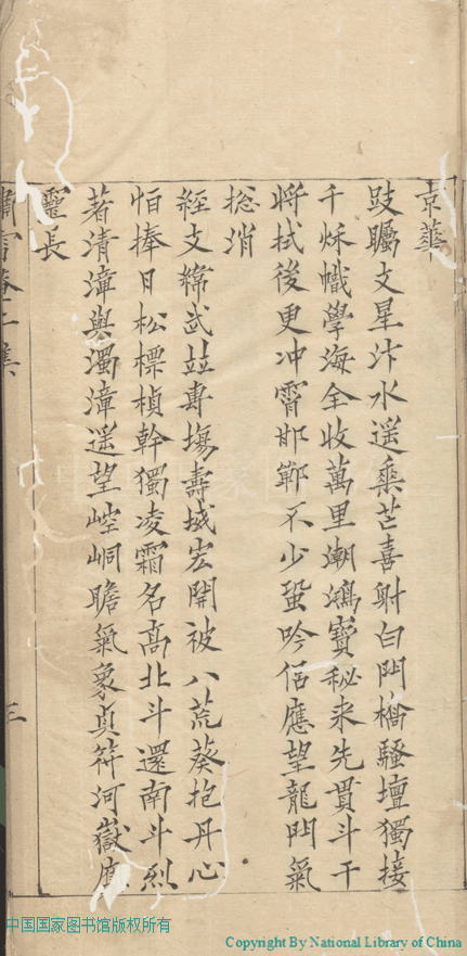 | (PRINT FRIENDLY VERSION) 嘯雪庵題詠二集:一卷,詩餘:一卷(清吳綃撰)。清初(1644-1722)抄本 ![]() Page : 題詠.3b | click for larger image | 嘯雪庵題詠二集:一卷,詩餘:一卷(清吳綃撰)。清初(1644-1722)抄本![]() Page : 題詠.3a | click for larger image | 嘯雪庵題詠二集:一卷,詩餘:一卷(清吳綃撰)。清初(1644-1722)抄本![]() Page : 題詠.2b | click for larger image | Back |
