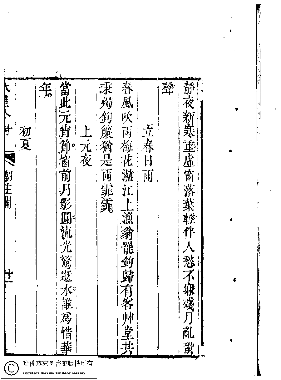 | (PRINT FRIENDLY VERSION) 吳中女士詩鈔(清任兆麟輯,張滋蘭選) : 清溪詩稿﹕一卷。清乾隆五十四年(1789)刻本 ![]() Page : 潮生阁.10a | click for larger image | 吳中女士詩鈔(清任兆麟輯,張滋蘭選) : 清溪詩稿﹕一卷。清乾隆五十四年(1789)刻本![]() Page : 潮生阁.9b | click for larger image | Back |