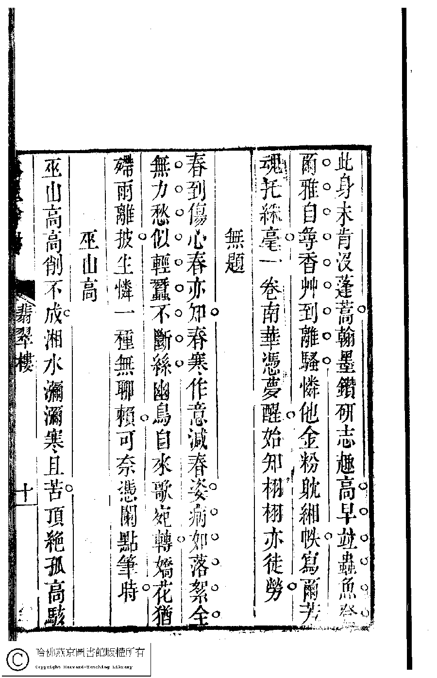 | (PRINT FRIENDLY VERSION) 吳中女士詩鈔(清任兆麟輯,張滋蘭選) : 翡翠樓集﹕一卷﹐浣紗詞﹕一卷。清乾隆五十四年(1789)刻本 ![]() Page : 翡翠樓.10a | click for larger image | Back |