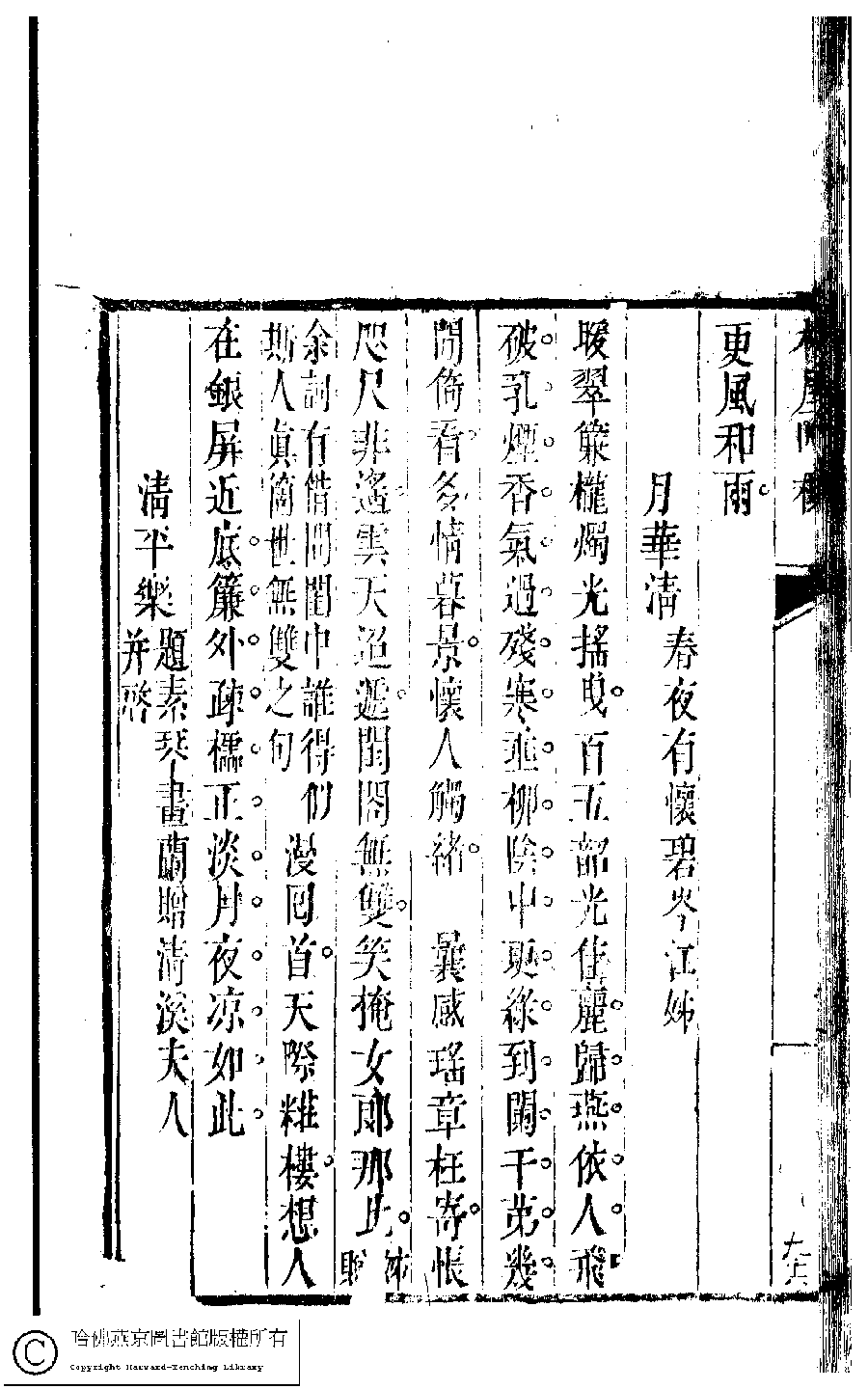 | (PRINT FRIENDLY VERSION) 吳中女士詩鈔(清任兆麟輯,張滋蘭選) : 翡翠樓集﹕一卷﹐浣紗詞﹕一卷。清乾隆五十四年(1789)刻本 ![]() Page : 翡翠樓.23b | click for larger image | 吳中女士詩鈔(清任兆麟輯,張滋蘭選) : 翡翠樓集﹕一卷﹐浣紗詞﹕一卷。清乾隆五十四年(1789)刻本![]() Page : 翡翠樓.23a | click for larger image | Back |