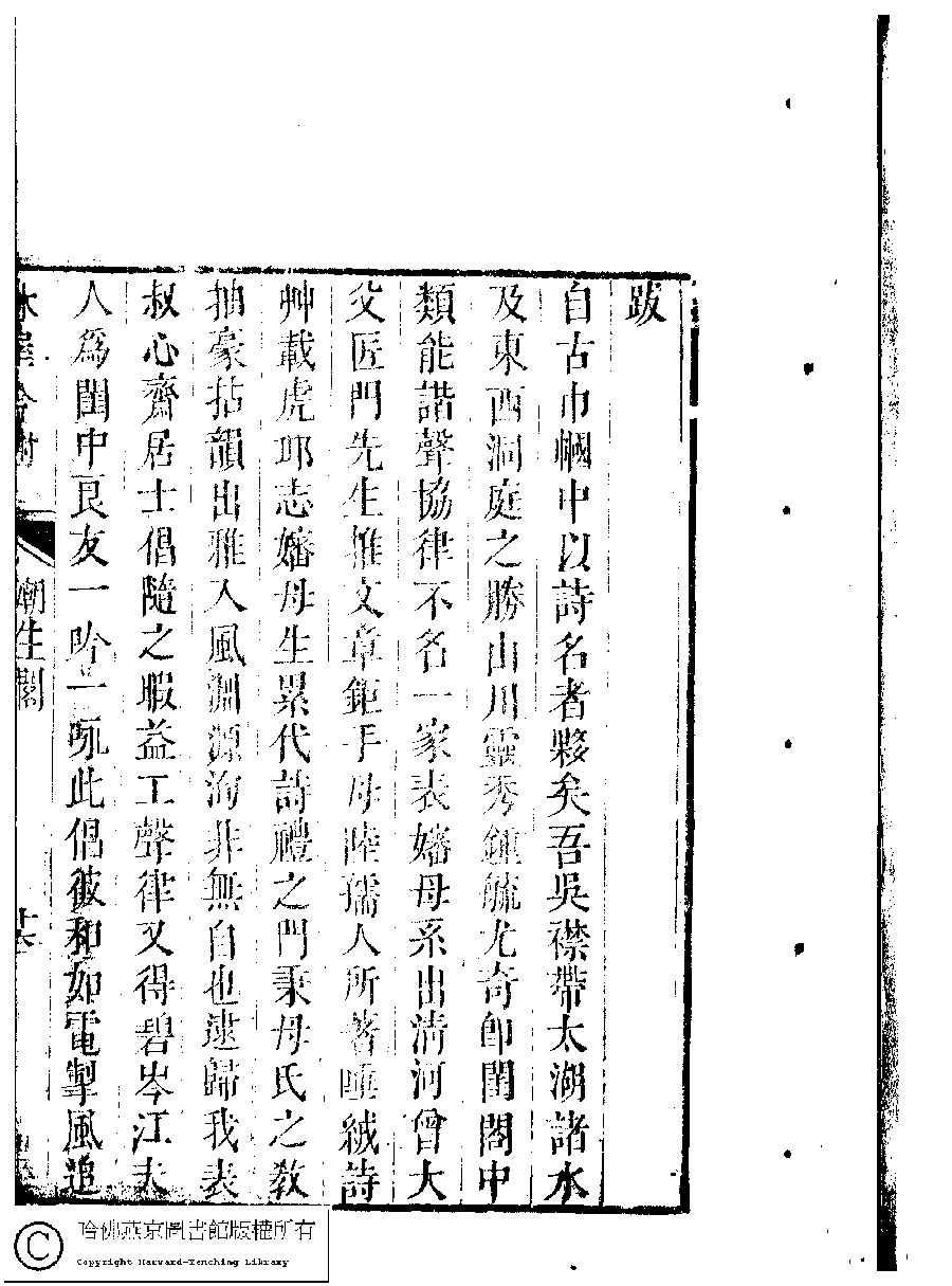 | (PRINT FRIENDLY VERSION) 吳中女士詩鈔(清任兆麟輯,張滋蘭選) : 清溪詩稿﹕一卷。清乾隆五十四年(1789)刻本 ![]() Page : 潮生阁.17b | click for larger image | 吳中女士詩鈔(清任兆麟輯,張滋蘭選) : 清溪詩稿﹕一卷。清乾隆五十四年(1789)刻本![]() Page : 潮生阁.17a | click for larger image | Back |