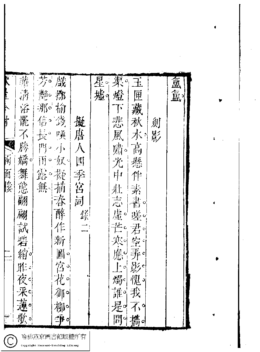 | (PRINT FRIENDLY VERSION) 吳中女士詩鈔(清任兆麟輯,張滋蘭選) : 兩面樓詩稿﹕一卷。清乾隆五十四年(1789)刻本 ![]() Page : 兩面樓.2b | click for larger image | 吳中女士詩鈔(清任兆麟輯,張滋蘭選) : 兩面樓詩稿﹕一卷。清乾隆五十四年(1789)刻本![]() Page : 兩面樓.2a | click for larger image | Back |