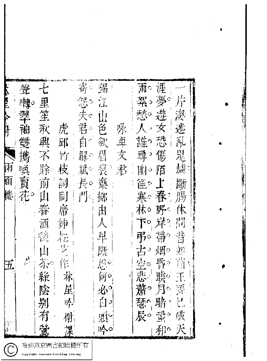 | (PRINT FRIENDLY VERSION) 吳中女士詩鈔(清任兆麟輯,張滋蘭選) : 兩面樓詩稿﹕一卷。清乾隆五十四年(1789)刻本 ![]() Page : 兩面樓.5a | click for larger image | 吳中女士詩鈔(清任兆麟輯,張滋蘭選) : 兩面樓詩稿﹕一卷。清乾隆五十四年(1789)刻本![]() Page : 兩面樓.4b | click for larger image | Back |