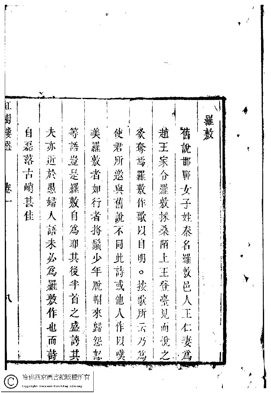 | (PRINT FRIENDLY VERSION) 歷朝名媛詩詞﹕十二卷(清陸昶輯)。清乾隆三十八年(1773)紅樹樓刻本 ![]() Page : 1.8a | click for larger image | Back |