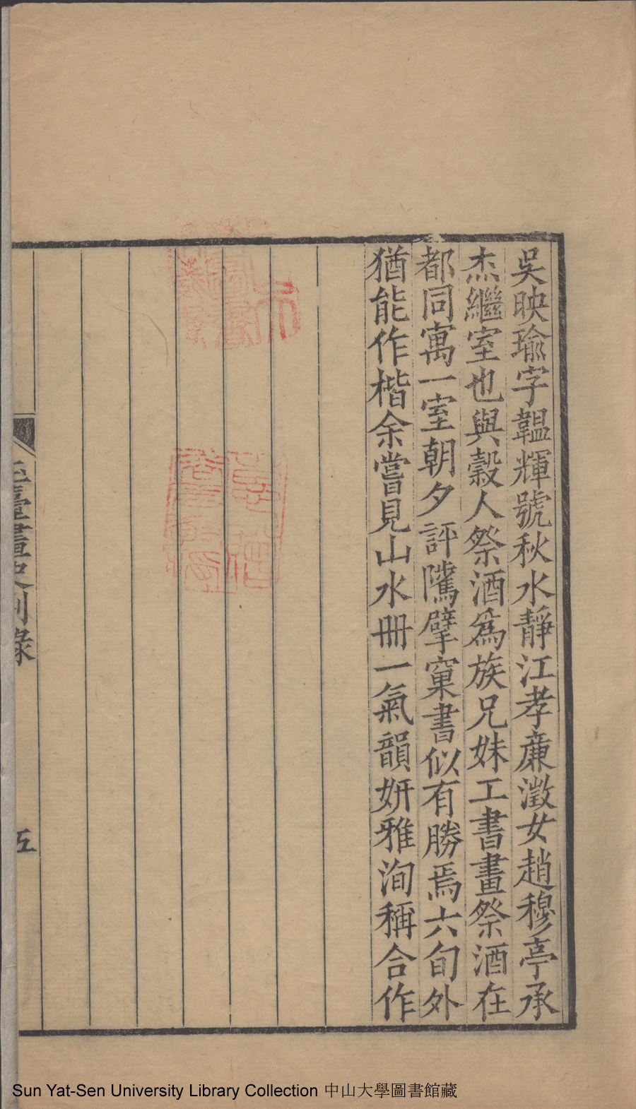 | Appears in: Yu tai hua shi: 5 juan, Bie lu: 1 juan (by Tang Shuyu, Qing Dynasty) |