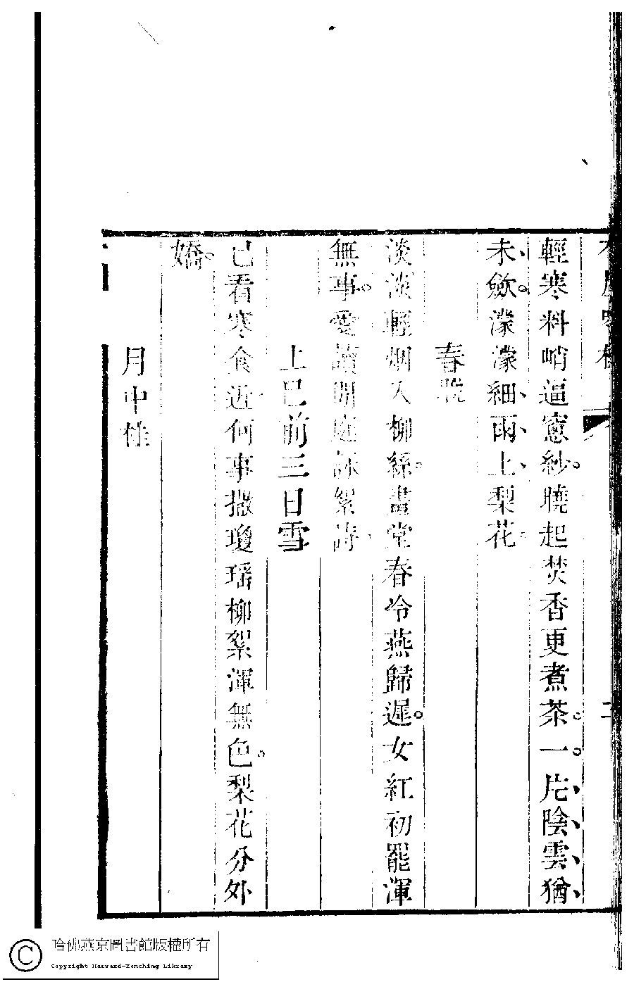 | (PRINT FRIENDLY VERSION) 吳中女士詩鈔(清任兆麟輯,張滋蘭選) : 愛蘭詩鈔﹕一卷。清乾隆五十四年(1789)刻本 ![]() Page : 愛蘭書屋.2b | click for larger image | Back |