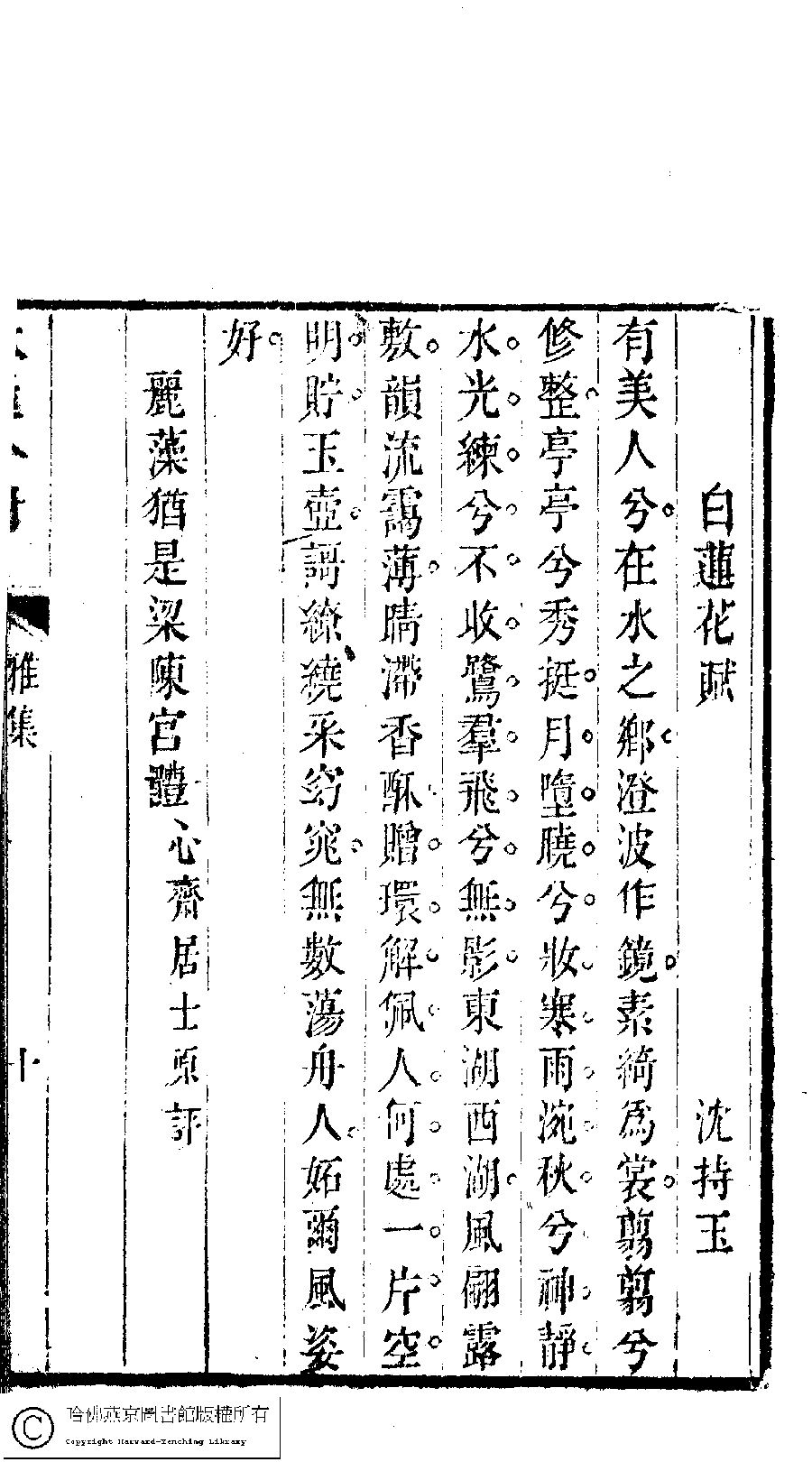 | (PRINT FRIENDLY VERSION) 吳中女士詩鈔(清任兆麟輯,張滋蘭選) : 翡翠林雅集﹕一卷。清乾隆五十四年(1789)刻本 ![]() Page : 雅集.10b | click for larger image | 吳中女士詩鈔(清任兆麟輯,張滋蘭選) : 翡翠林雅集﹕一卷。清乾隆五十四年(1789)刻本![]() Page : 雅集.10a | click for larger image | Back |