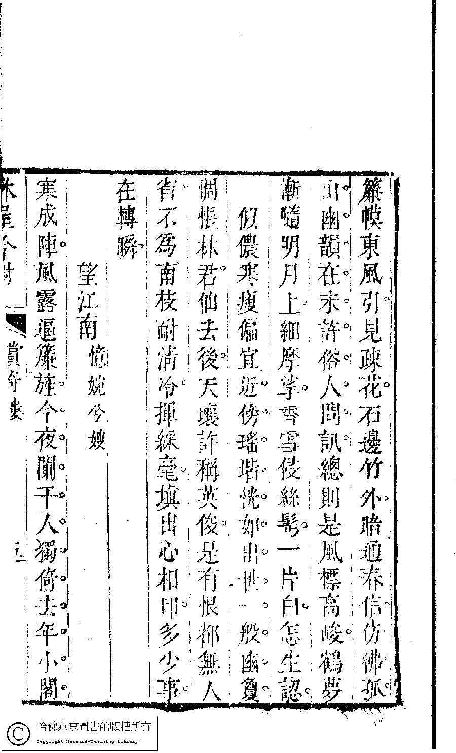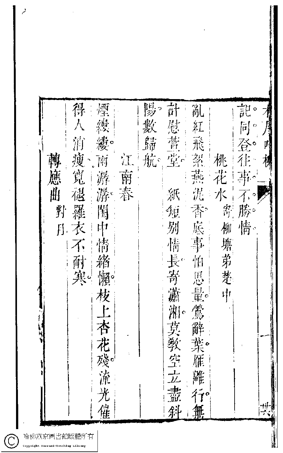 | (PRINT FRIENDLY VERSION) 吳中女士詩鈔(清任兆麟輯,張滋蘭選) : 賞奇樓蠹餘稿﹕一卷。清乾隆五十四年(1789)刻本 ![]() Page : 賞奇樓.5b | click for larger image | 吳中女士詩鈔(清任兆麟輯,張滋蘭選) : 賞奇樓蠹餘稿﹕一卷。清乾隆五十四年(1789)刻本![]() Page : 賞奇樓.5a | click for larger image | Back |