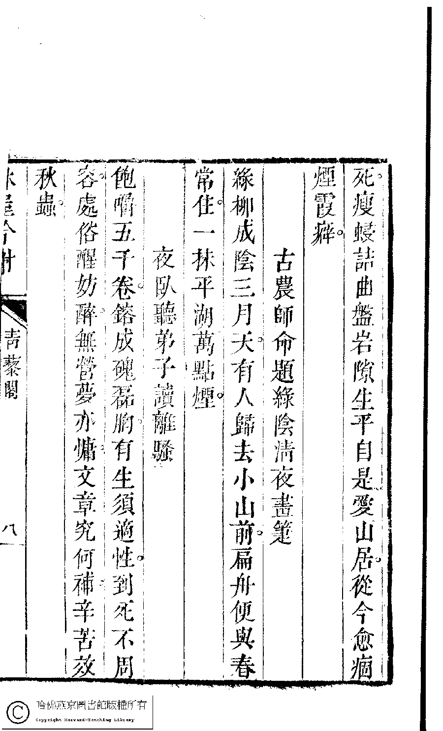 | (PRINT FRIENDLY VERSION) 吳中女士詩鈔(清任兆麟輯,張滋蘭選) : 青藜閣集﹕一卷。清乾隆五十四年(1789)刻本 ![]() Page : 青藜閣.8a | click for larger image | 吳中女士詩鈔(清任兆麟輯,張滋蘭選) : 青藜閣集﹕一卷。清乾隆五十四年(1789)刻本![]() Page : 青藜閣.7b | click for larger image | Back |