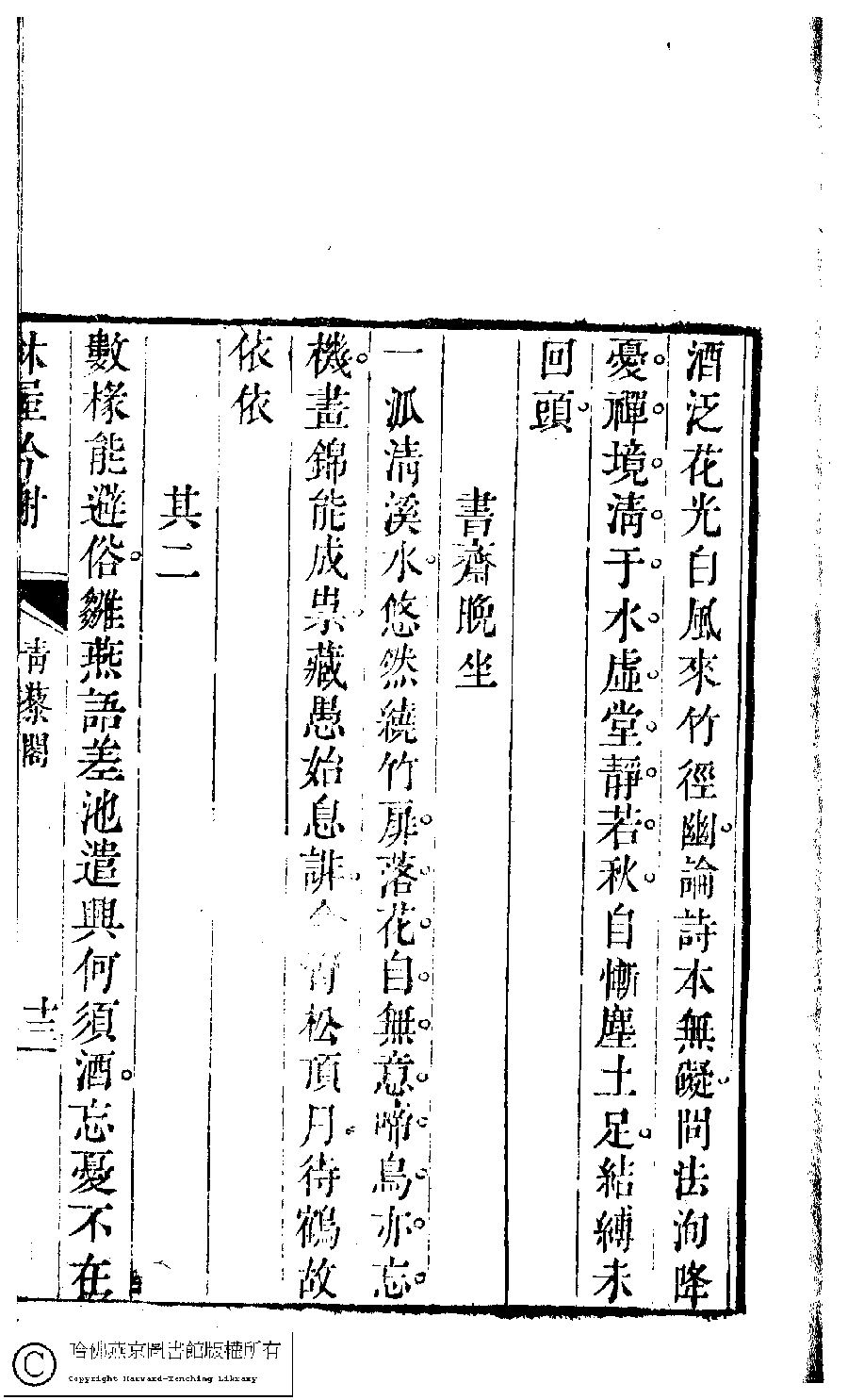 | (PRINT FRIENDLY VERSION) 吳中女士詩鈔(清任兆麟輯,張滋蘭選) : 青藜閣集﹕一卷。清乾隆五十四年(1789)刻本 ![]() Page : 青藜閣.13a | click for larger image | Back |