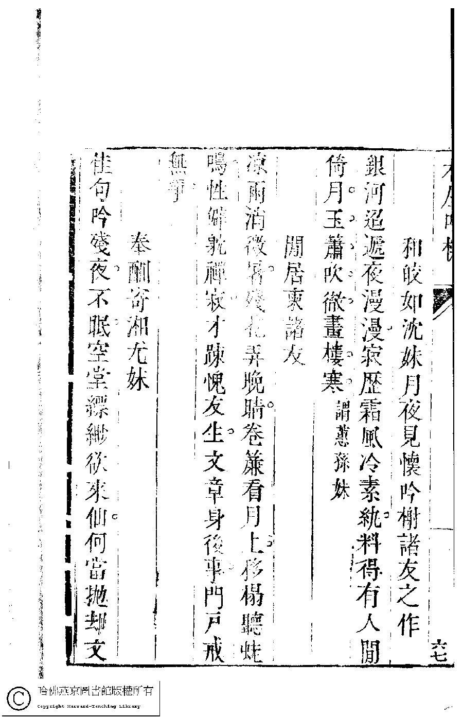 Poem [He Jiaoru Shen mei yue ye jian huai yin xie zhu you zhi zuo]