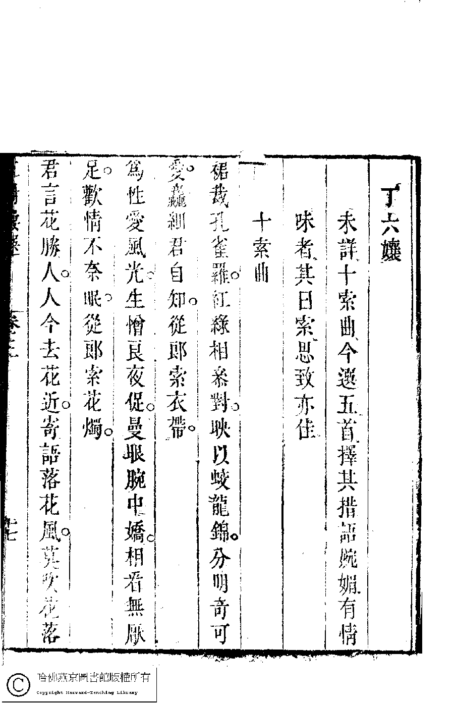 | (PRINT FRIENDLY VERSION) 歷朝名媛詩詞﹕十二卷(清陸昶輯)。清乾隆三十八年(1773)紅樹樓刻本 ![]() Page : 3.17a | click for larger image | Back |